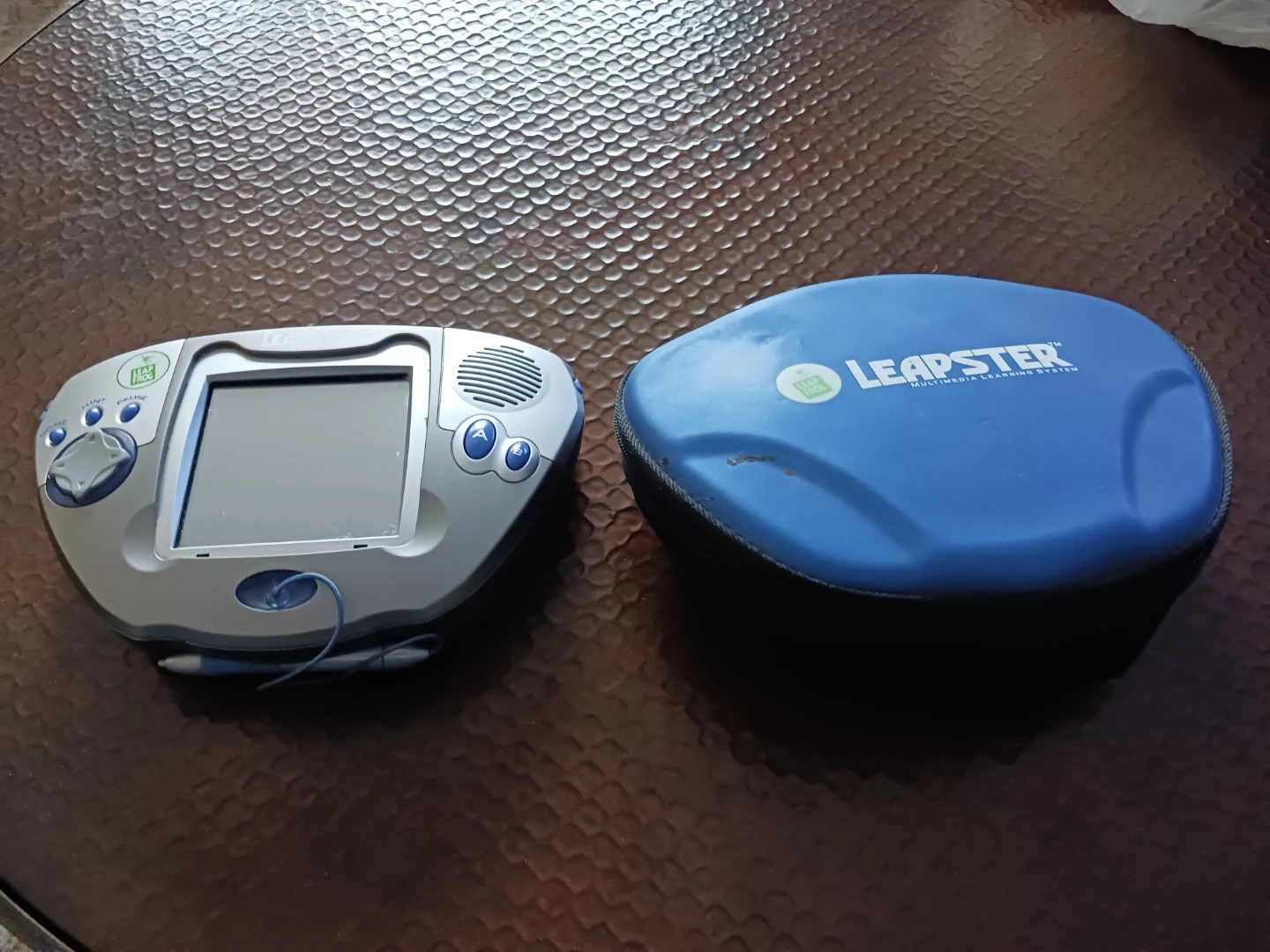 LeapFrog Leapster learning system. Includes the handheld device and a blue protective carrying case. It's designed for interactive educational play. I only do pickup