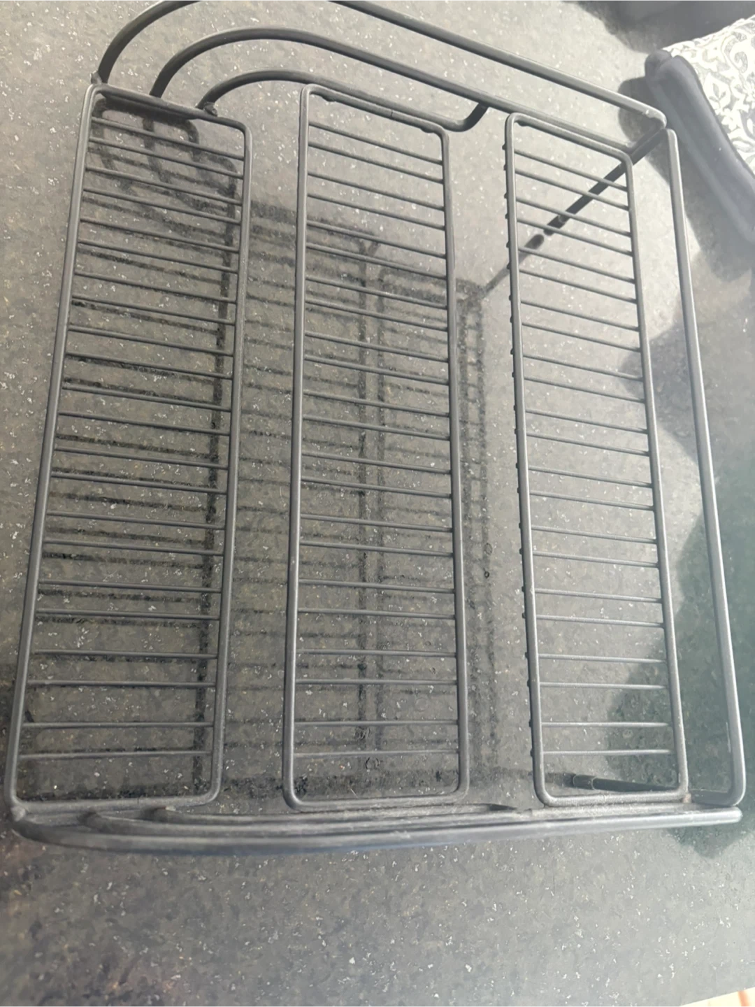 This is a wire drawer organizer tray with three compartments. It's great for storing utensils or other kitchen gadgets. Made of durable metal.