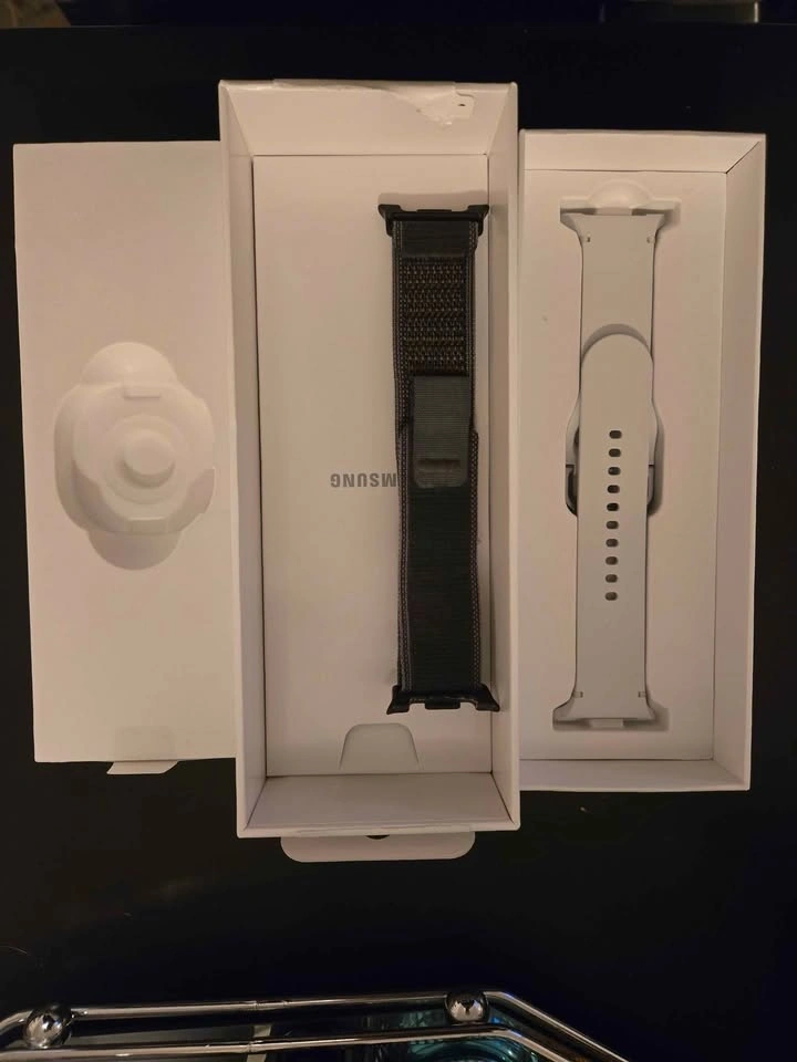 The watch is in perfect condition. No scratches on screen or dents on case. Comes with box, cable, and 2 extra straps. Pick up only.