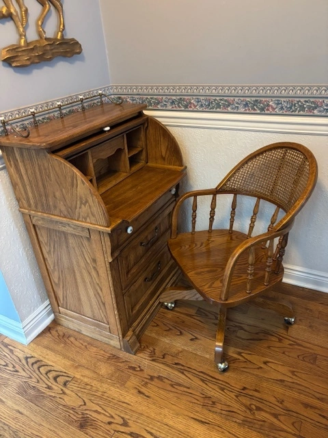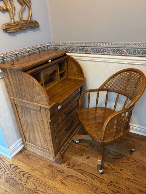 Pulaski RollTop Desk + Oak Captains Chair (Keepsakes Collection)