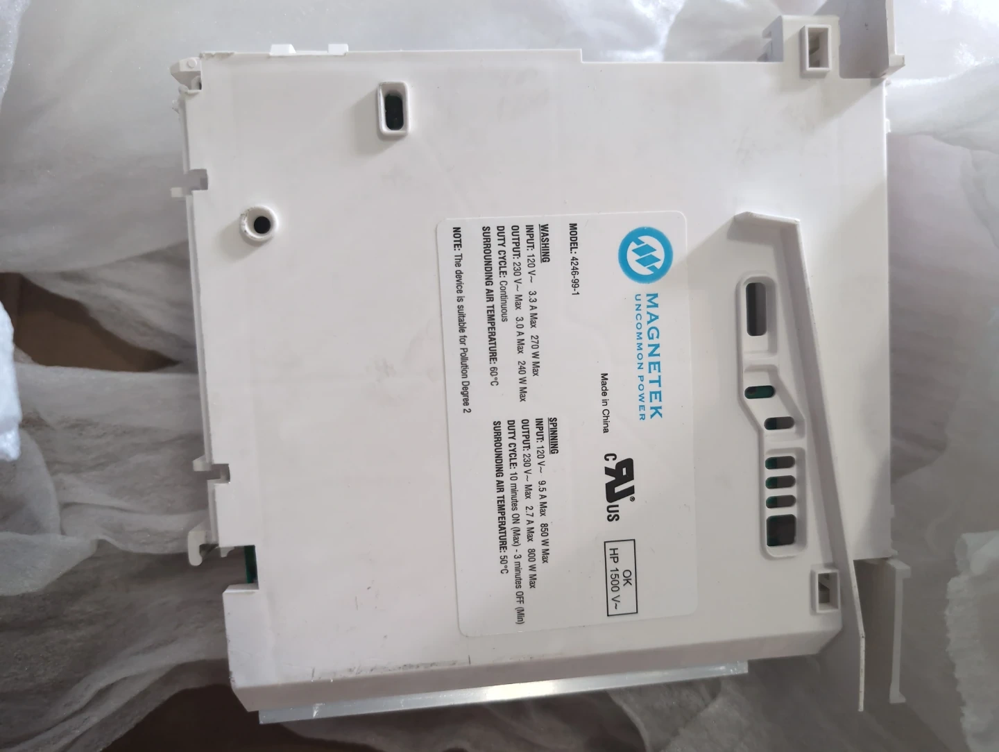 This is an Electrolux control board for a motor. It's a genuine renewal part. It's the Magnetek model 42646-99-1. It's suitable for Position Degree 2. It operates on 120V input.