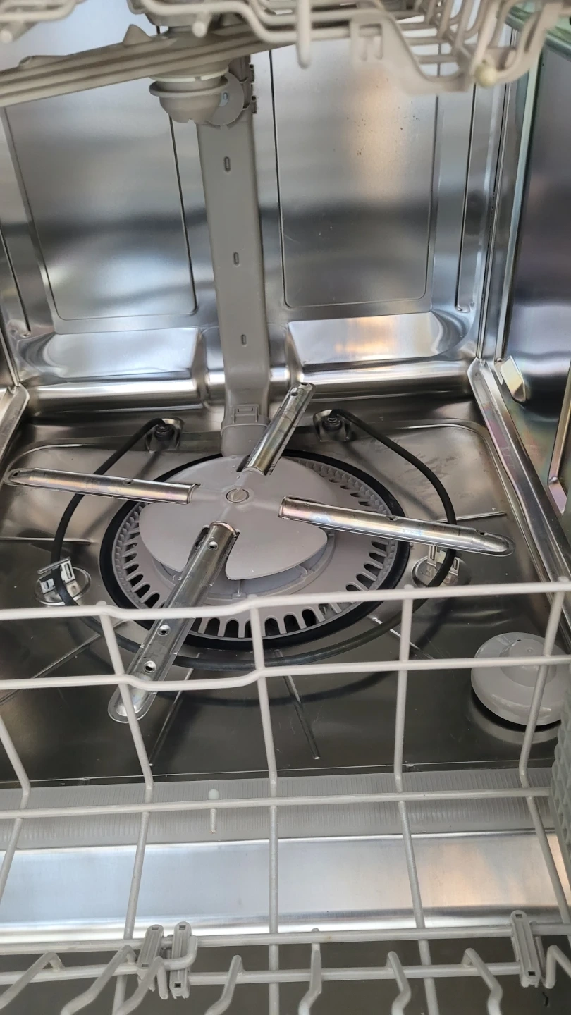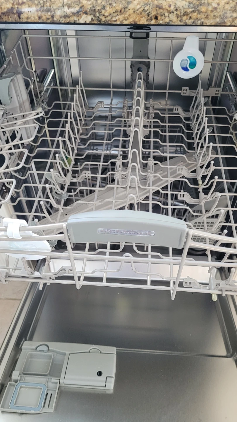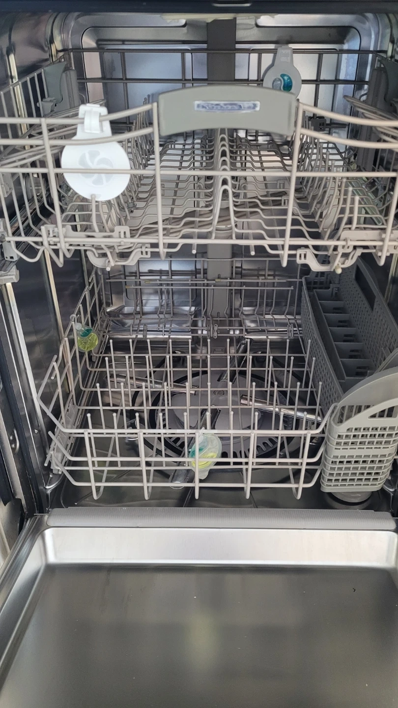 This is a stainless steel dishwasher from KitchenAid. It features multiple racks for ample dish placement and a stainless steel interior for durability. The control panel offers various wash cycles and options to suit your needs.