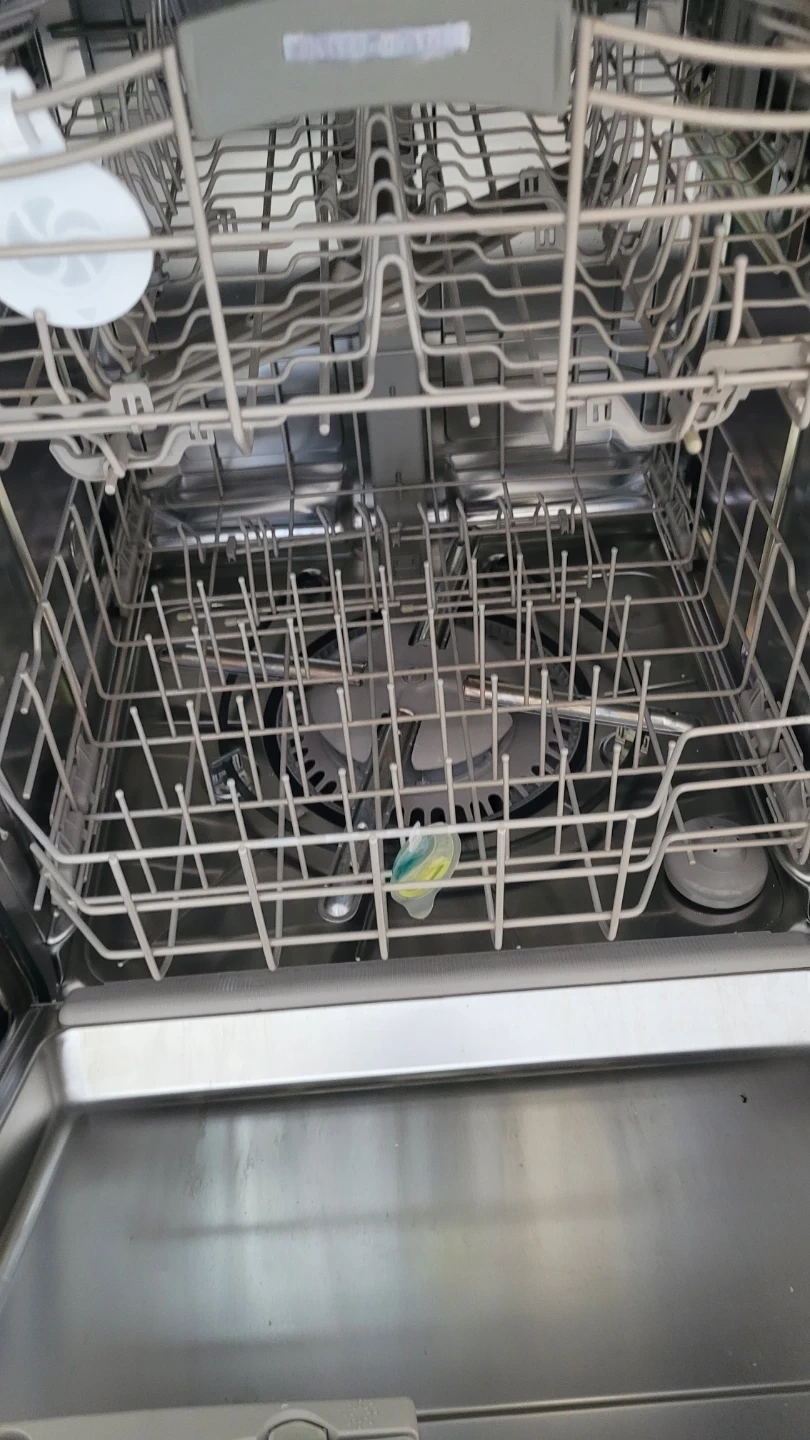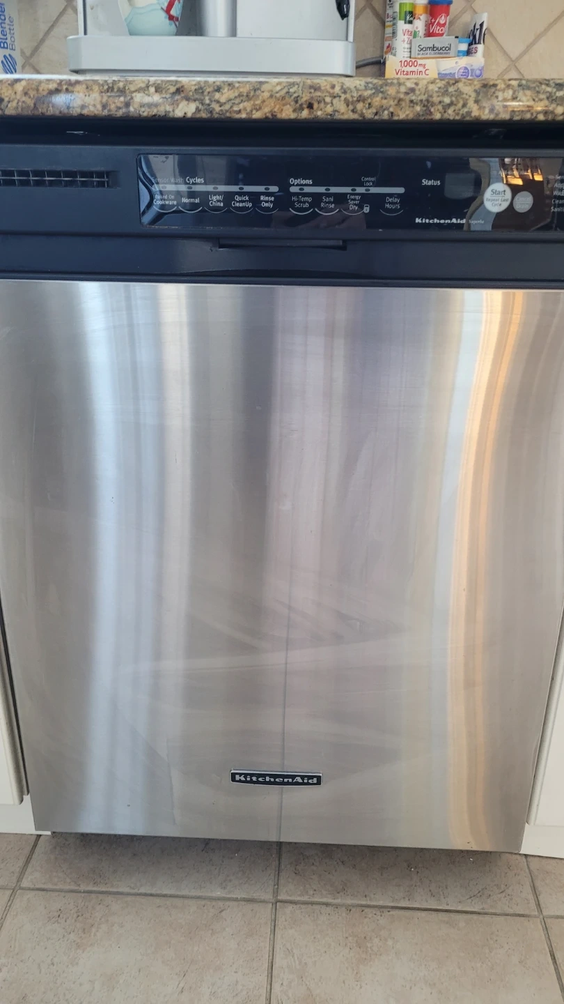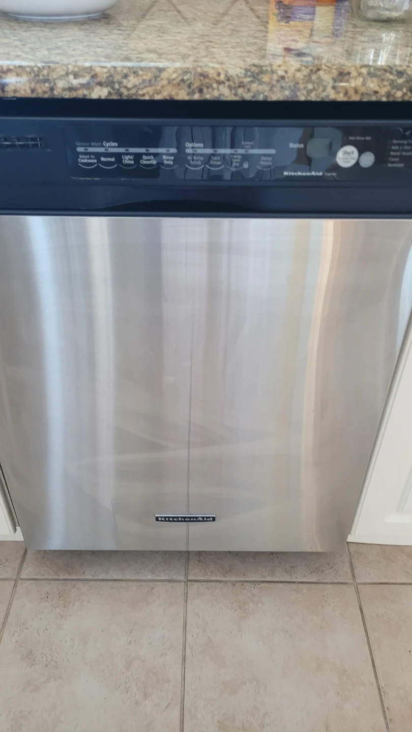 This is a stainless steel dishwasher from KitchenAid. It features multiple racks for ample dish placement and a stainless steel interior for durability. The control panel offers various wash cycles and options to suit your needs.