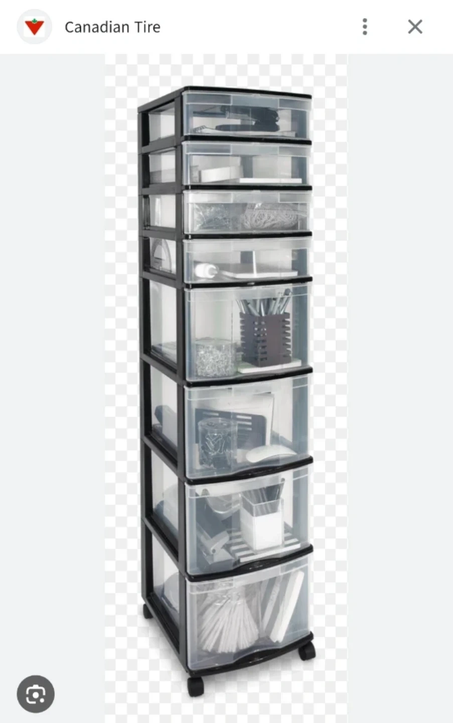 This 8-drawer storage tower is ideal for added storage anywhere in your home. It comes with clear, transparent drawers and caster wheels for easy mobility. Made in Canada, it's great for organizing personal items and toiletries.