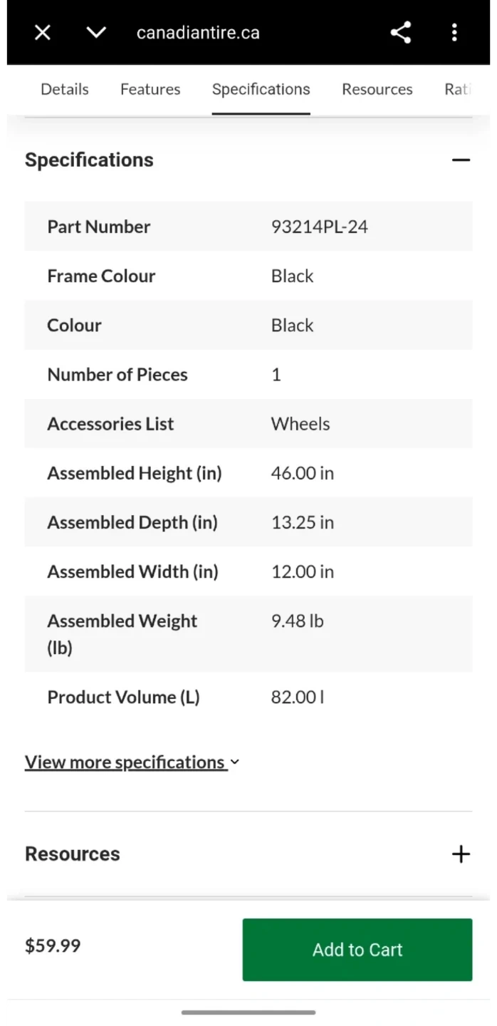 - Dimensions13.25 x 12 x 46-in (33.65 x 30.48 x 116.84 cm)