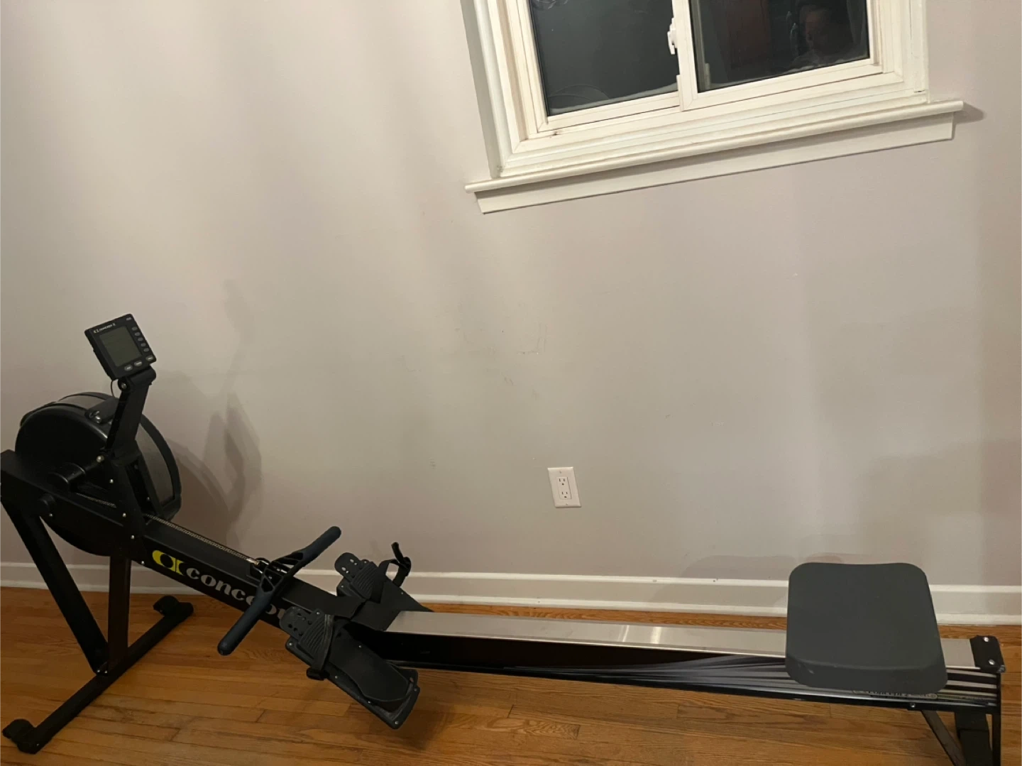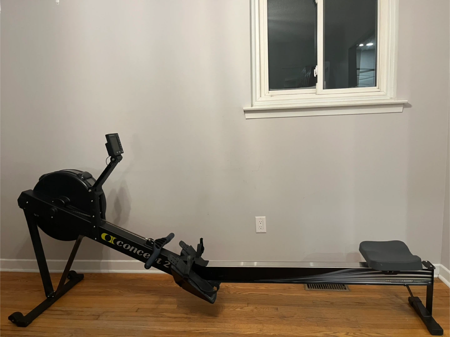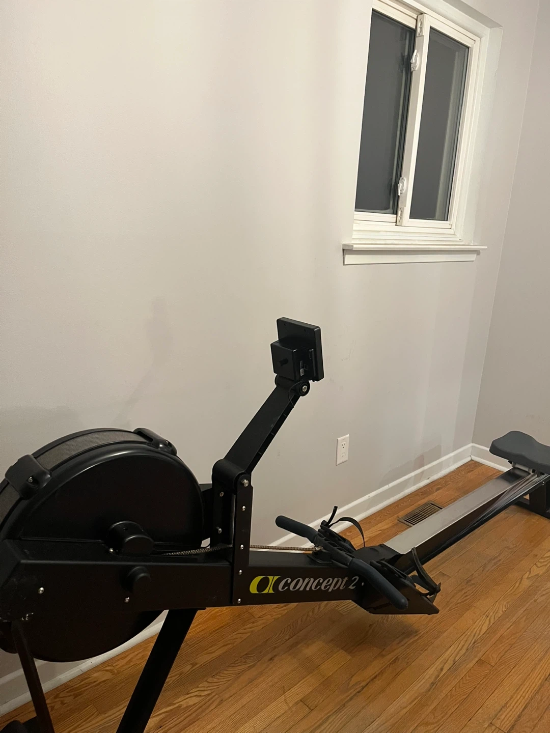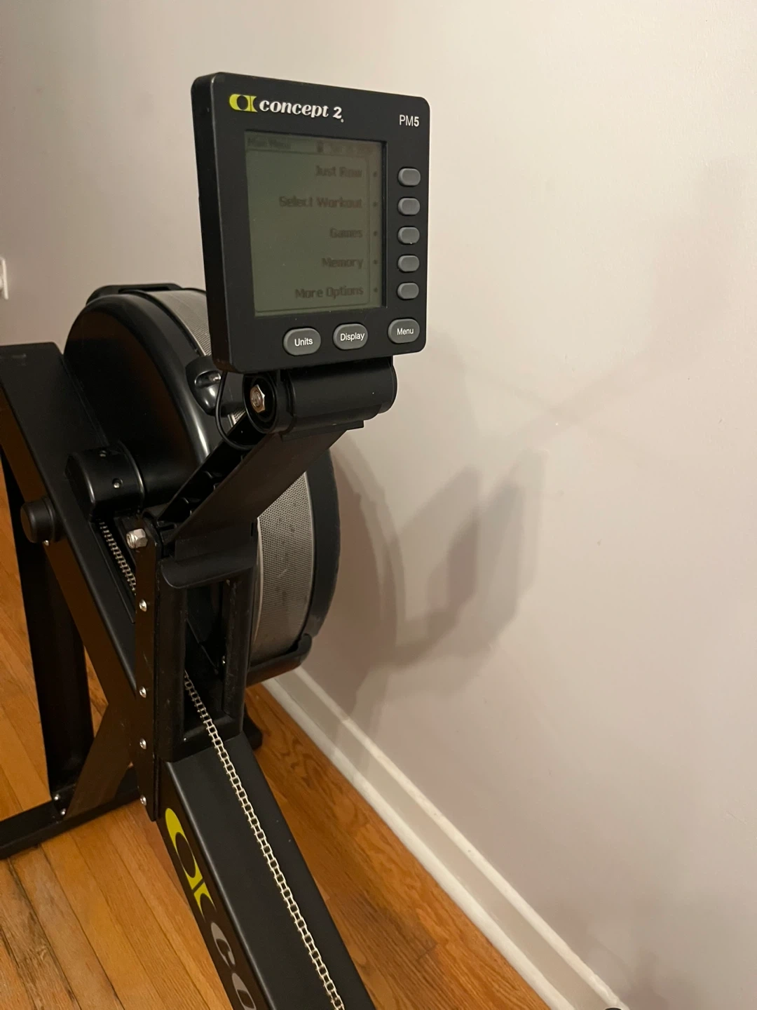 Concept2 PM5 performance monitor rowing machine. It's a black and silver rower with a sleek design. Great for a full-body workout at home! Pick up is in Burlington and cash is preferred