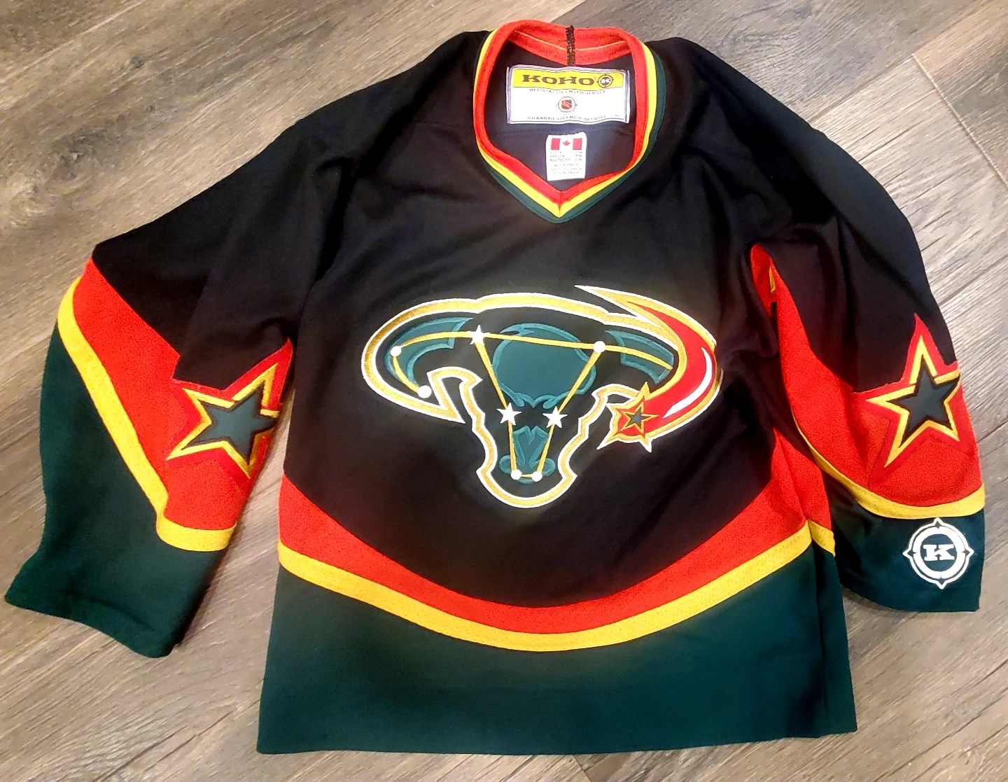 This is a vintage Dallas Stars alternate jersey, popularly known as the "Mooterus" jersey, produced by Koho in 2003.