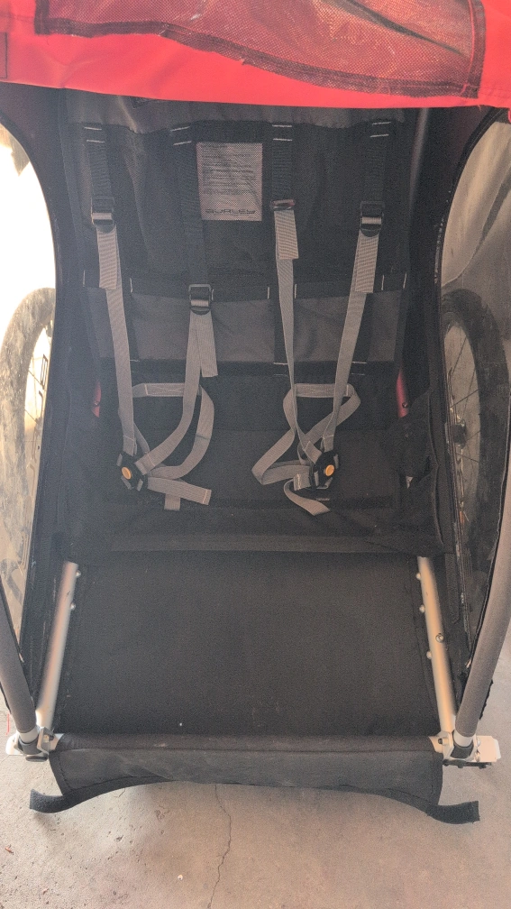 Selling a Burley child carrier bike trailer in red and black! It's in great condition - barely used and ready for some family adventures. Perfect for taking your little ones along for a bike ride or can be used as a lightweight, roomy stroller.