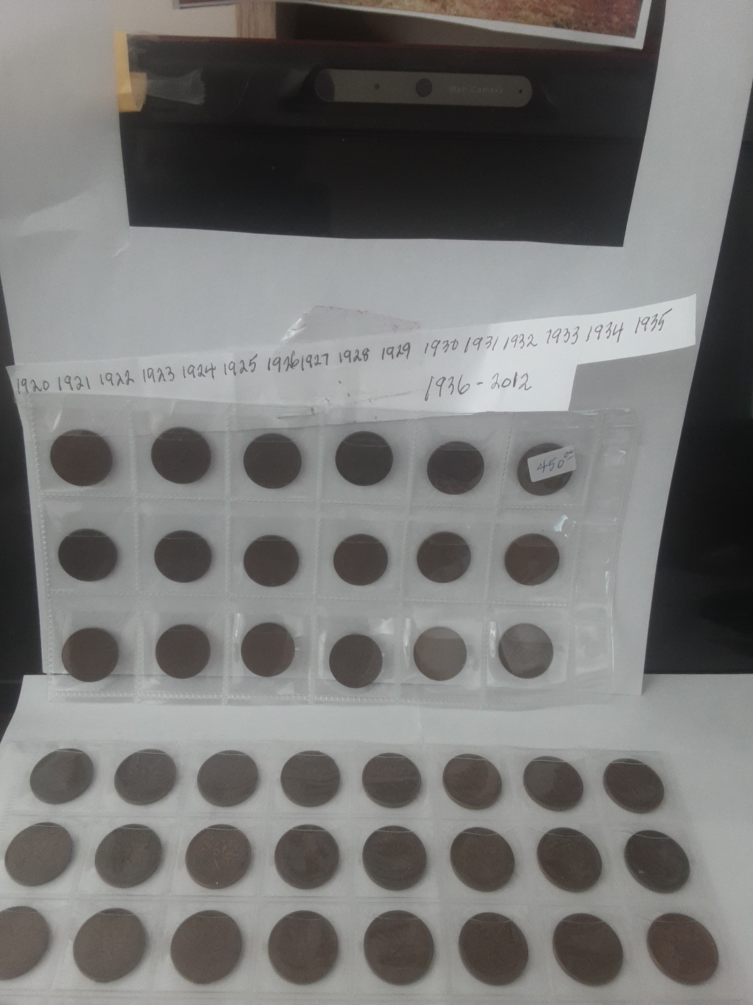 Collection of Canadian pennies in a coin album. Dates range from 1920 - 2012. 106 coins, complete set, magnetic and non magnetic. a must have for the canadian coin collector , $450.00 for viewing call 403 2411387