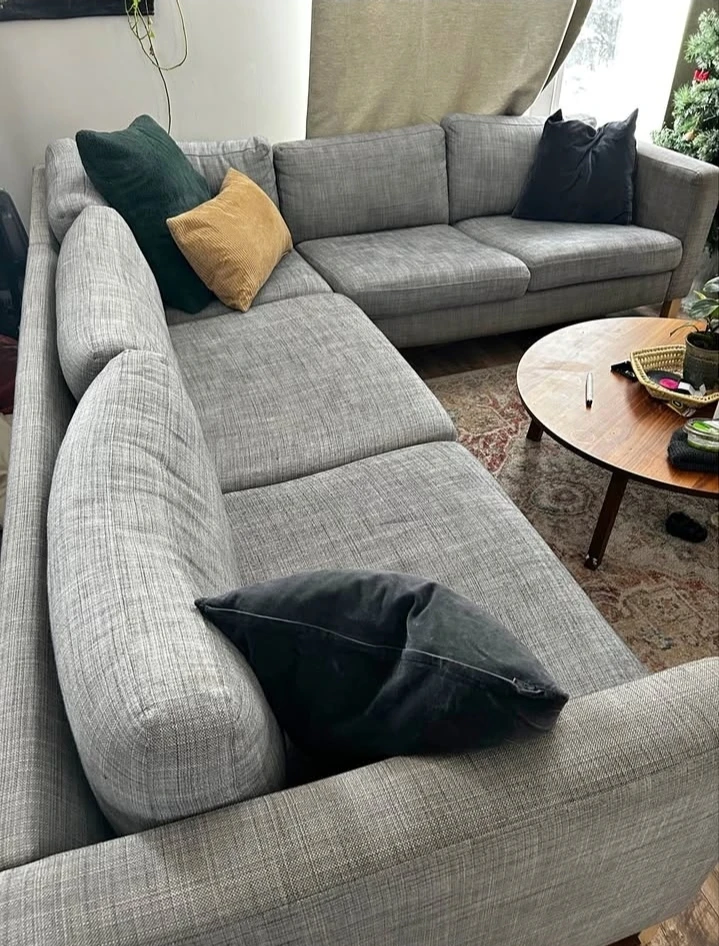 Selling a comfortable grey sectional sofa. It's in great shape and ready for a new living room! The neutral colour will match any decor