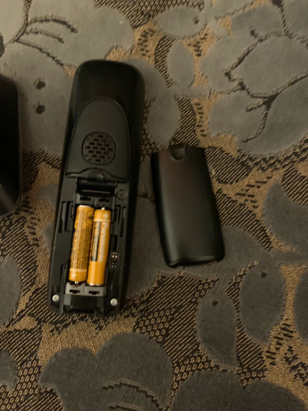 Panasonic cordless phone with base and handset. Model KX-T411C. It uses 2 AAA batteries, not included. Features talking caller ID and DECT 6.0.