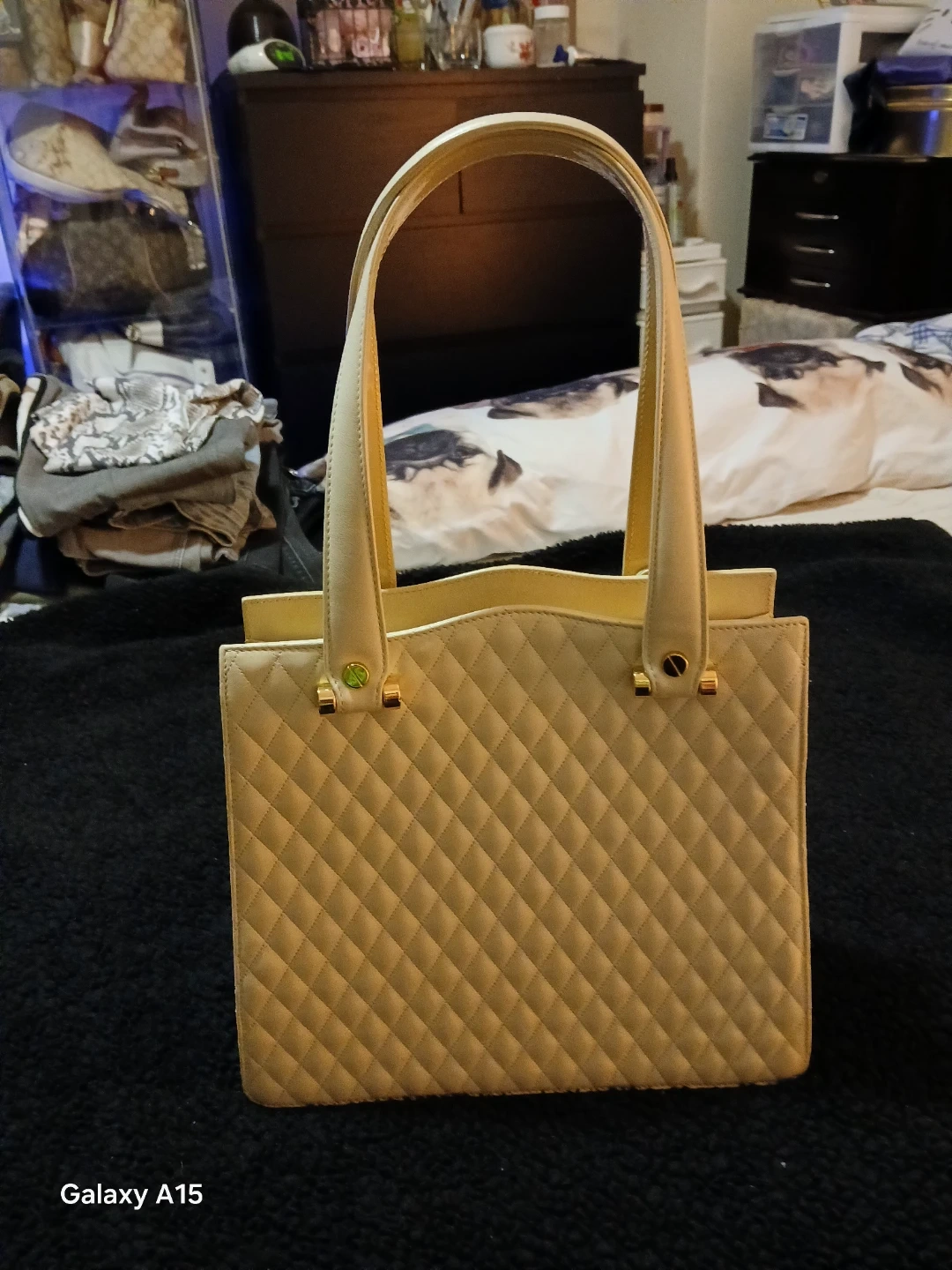 Valentino Orlandi Cream Quilted Leather Top Handle Handbag