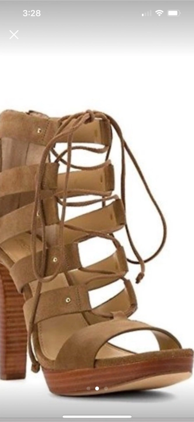 These Michael Kors heels are perfect for any outfit or occasion,The suede material gives them a luxurious feel. Stunning Michael Kors Features lace-up design, Tan brown Size 7.5 other pictures in black only have as my pictures do no justice as they are gorgeous. Just unfortunately ordered wrong size only reason I am selling as they don’t fit me properly sadly as I love them . Perfect for summer paid originally over 150 so getting for amazing price as well