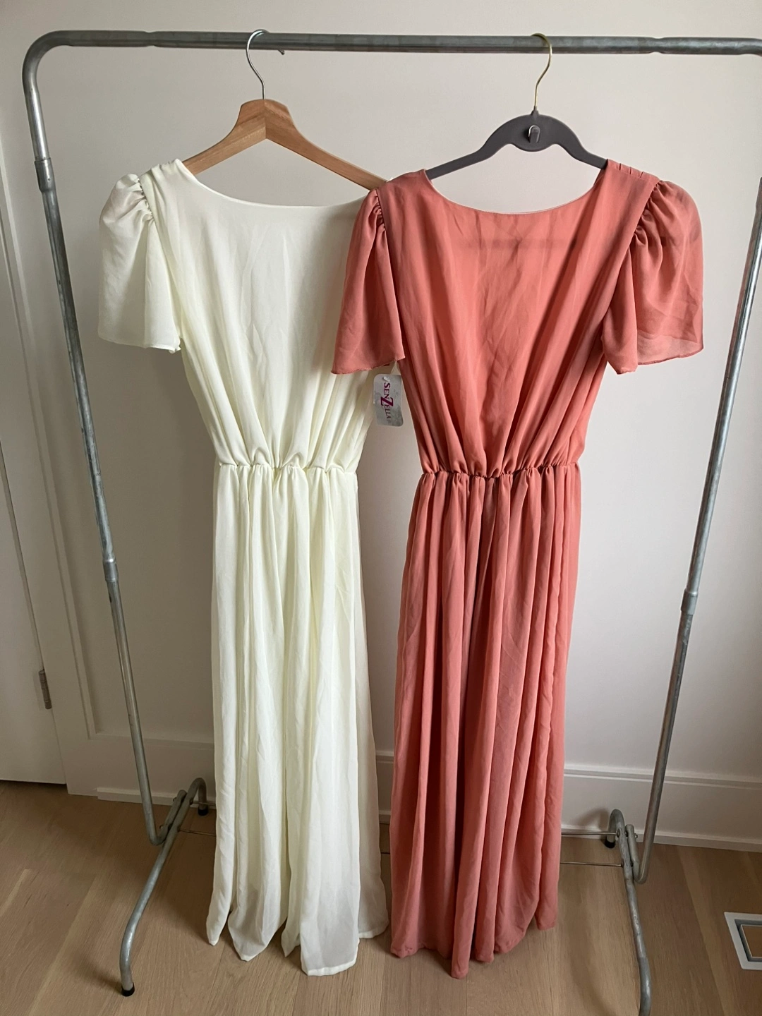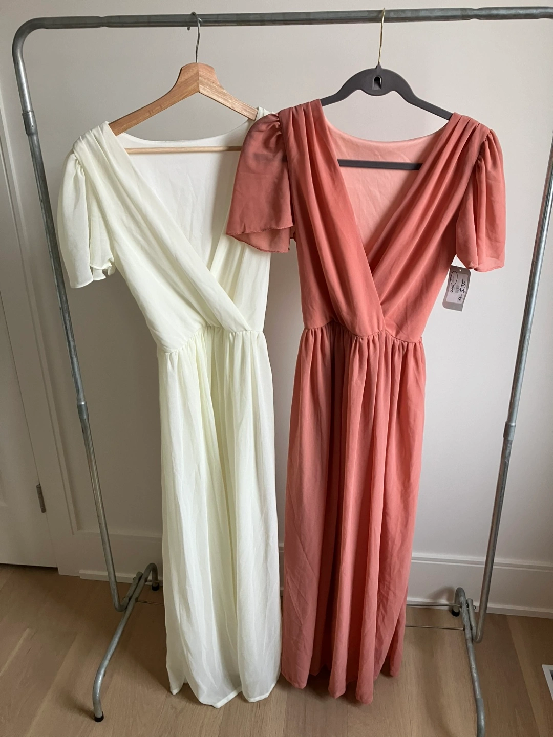 Two dresses for sale! One is a lovely shade of pink and the other is a classic white colour. Both are in great condition and ready for a new home. Originally priced at $65 each. The pink one is brand new, the white one worn once. $40 for both or $20 each.