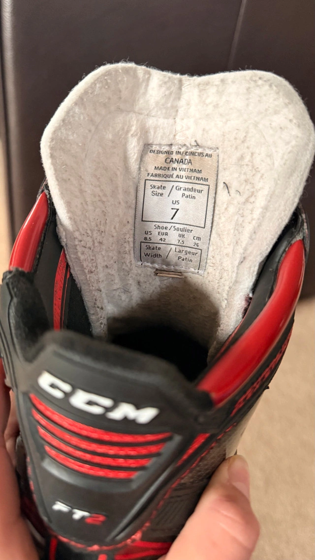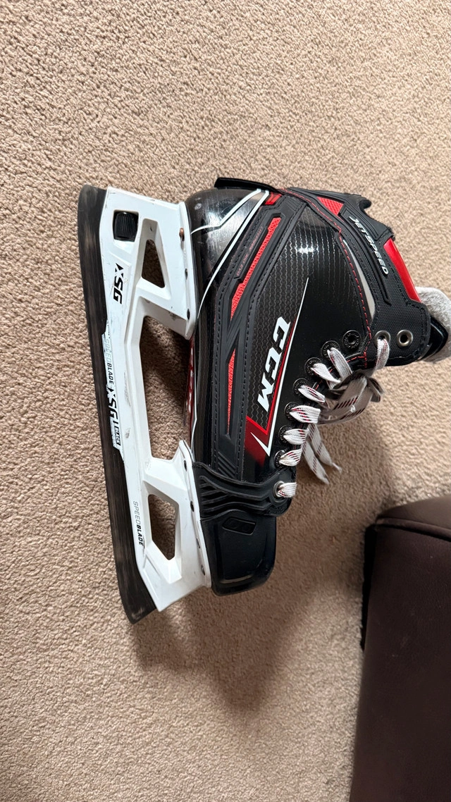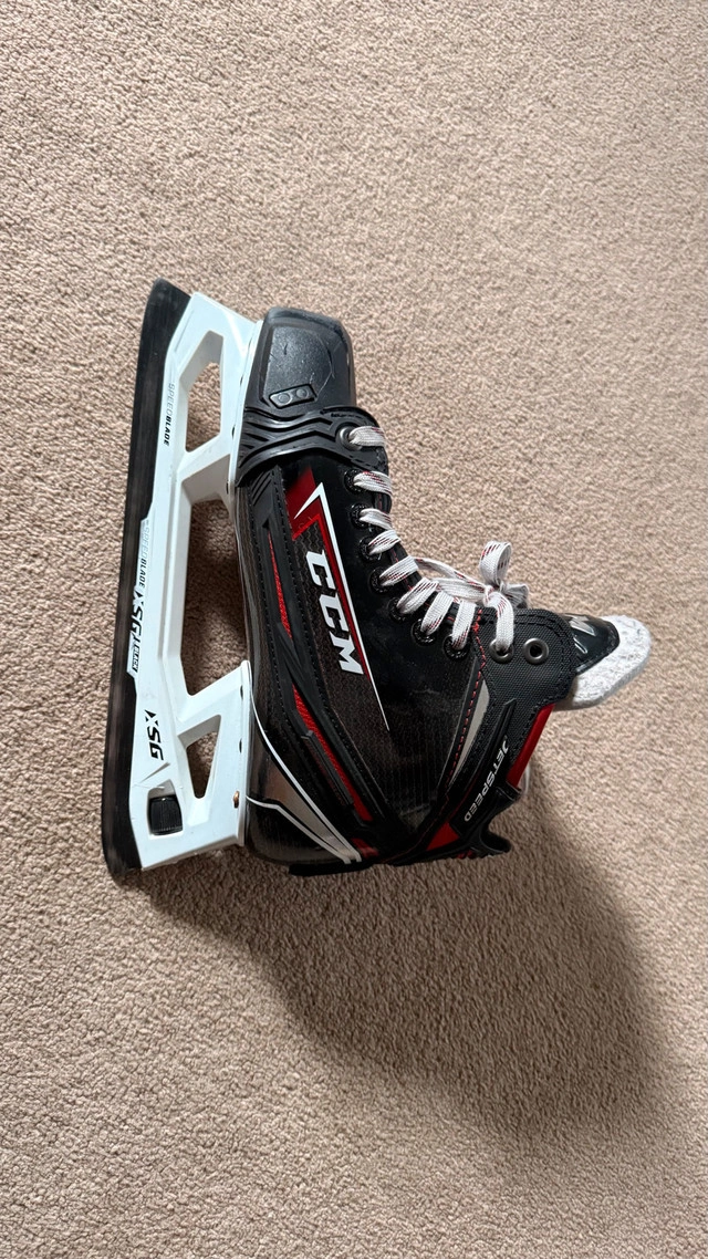 Selling a pair of elite-level CCM Jetspeed FT2 goalie skates in size 7 (D width/Regular). These are the professional model, perfect for serious goalies looking for high performance and durability. **Condition:** Used, but in excellent shape. Blades have plenty of life left. Some minor cosmetic wear consistent with use (see photos). Only selling because they are slightly the wrong size for me. Pick up in the Northeast area of Edmonton. Cash preferred. If the ad is up, they are still available. Serious inquiries only, please!