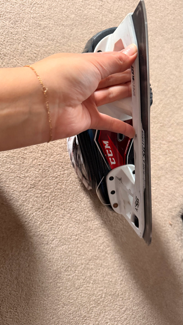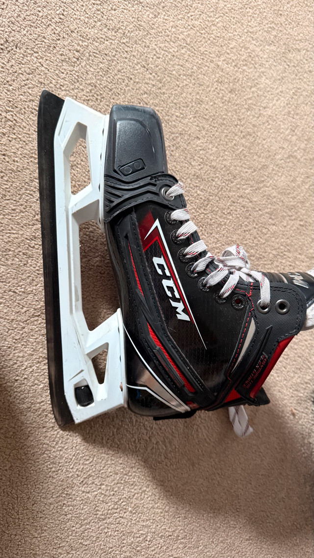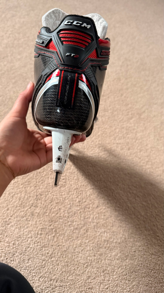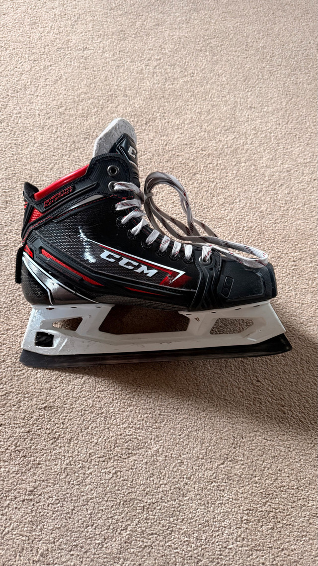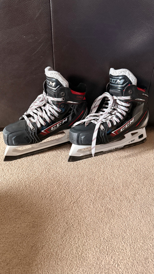 Selling a pair of elite-level CCM Jetspeed FT2 goalie skates in size 7 (D width/Regular). These are the professional model, perfect for serious goalies looking for high performance and durability. **Condition:** Used, but in excellent shape. Blades have plenty of life left. Some minor cosmetic wear consistent with use (see photos). Only selling because they are slightly the wrong size for me. Pick up in the Northeast area of Edmonton. Cash preferred. If the ad is up, they are still available. Serious inquiries only, please!