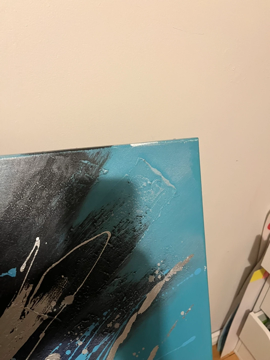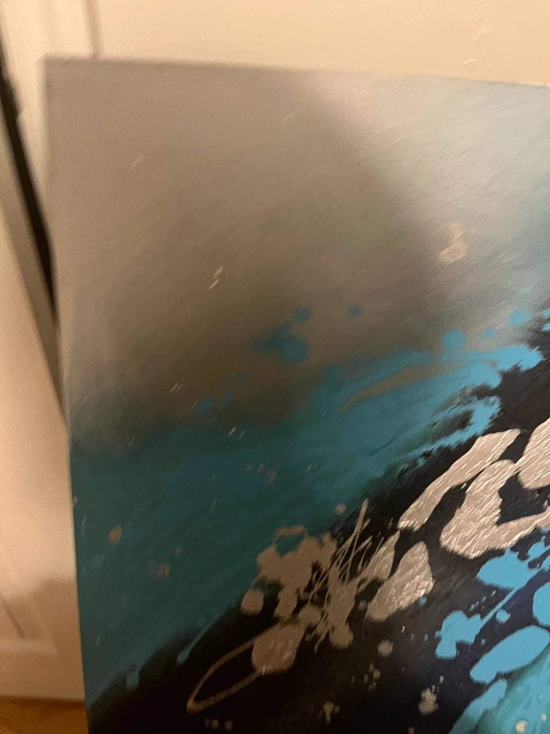 Abstract Canvas Painting - Turquoise, Black, Silver
