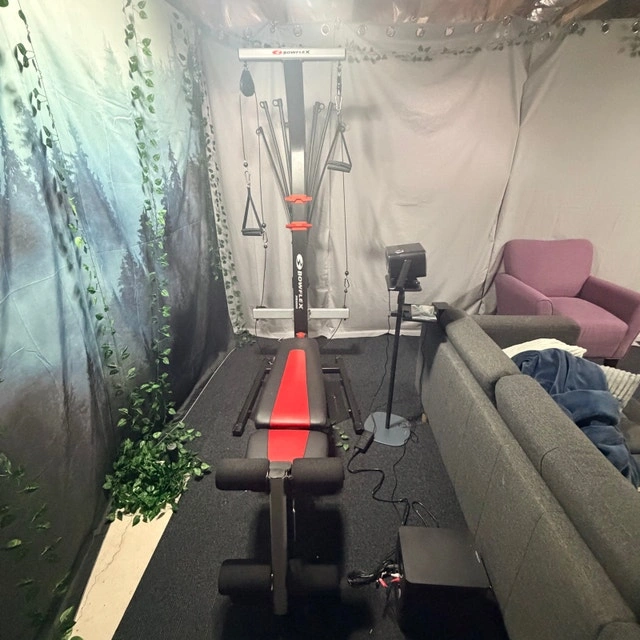 I'm selling a Bowflex PR1000 home gym in used condition, perfect for a full body workout at home. This machine offers over 25 exercises and provides resistance up to 210 lbs. It's a great way to get a comprehensive workout without needing multiple machines. It has a space-saving design and folds for easy storage. It also features multiple cable pulley positions for custom workouts, includes a rowing machine rail, and a workout bench. Cash accepted.