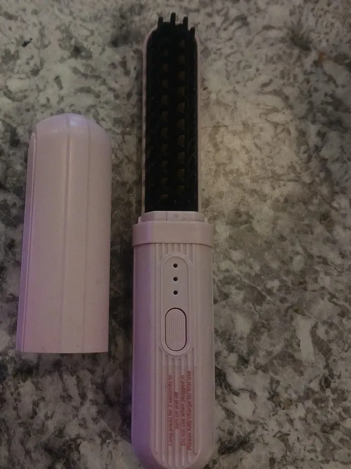 Selling a cute pink mini hair straightening brush! It's super portable and easy to use. Just long press for 2 seconds to turn it on and off. Please fully charge for first use and do not use when plugged in