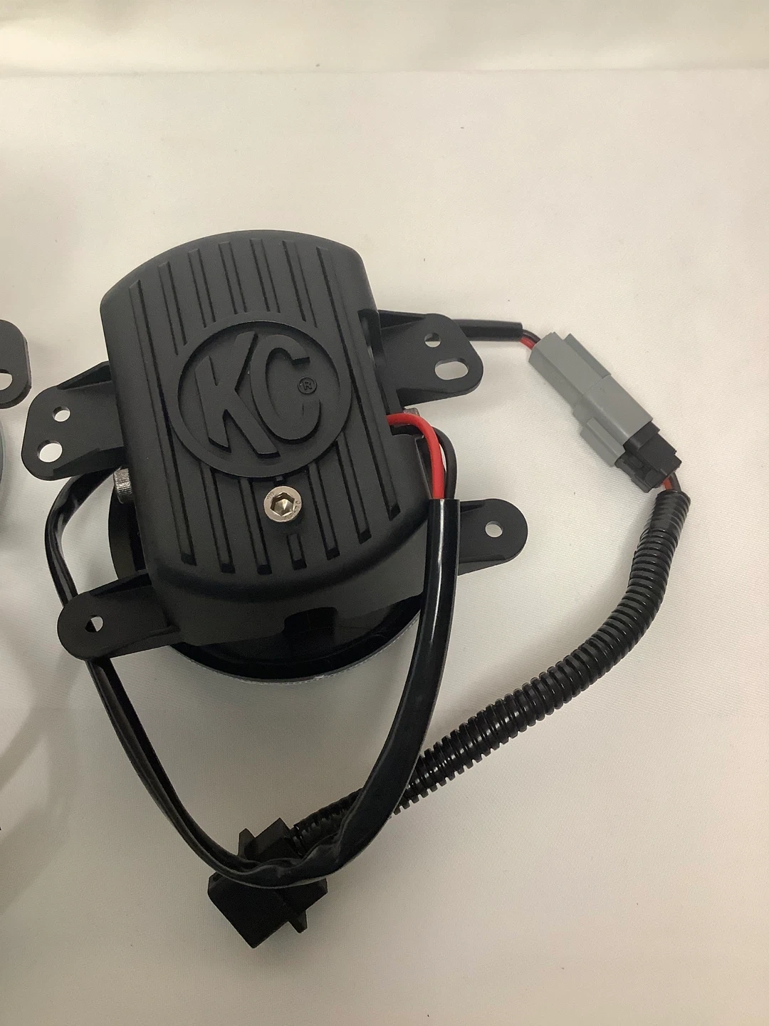 A pair of KC HiLiTES fog lights. They feature a black housing with clear lenses. Includes wiring harnesses.