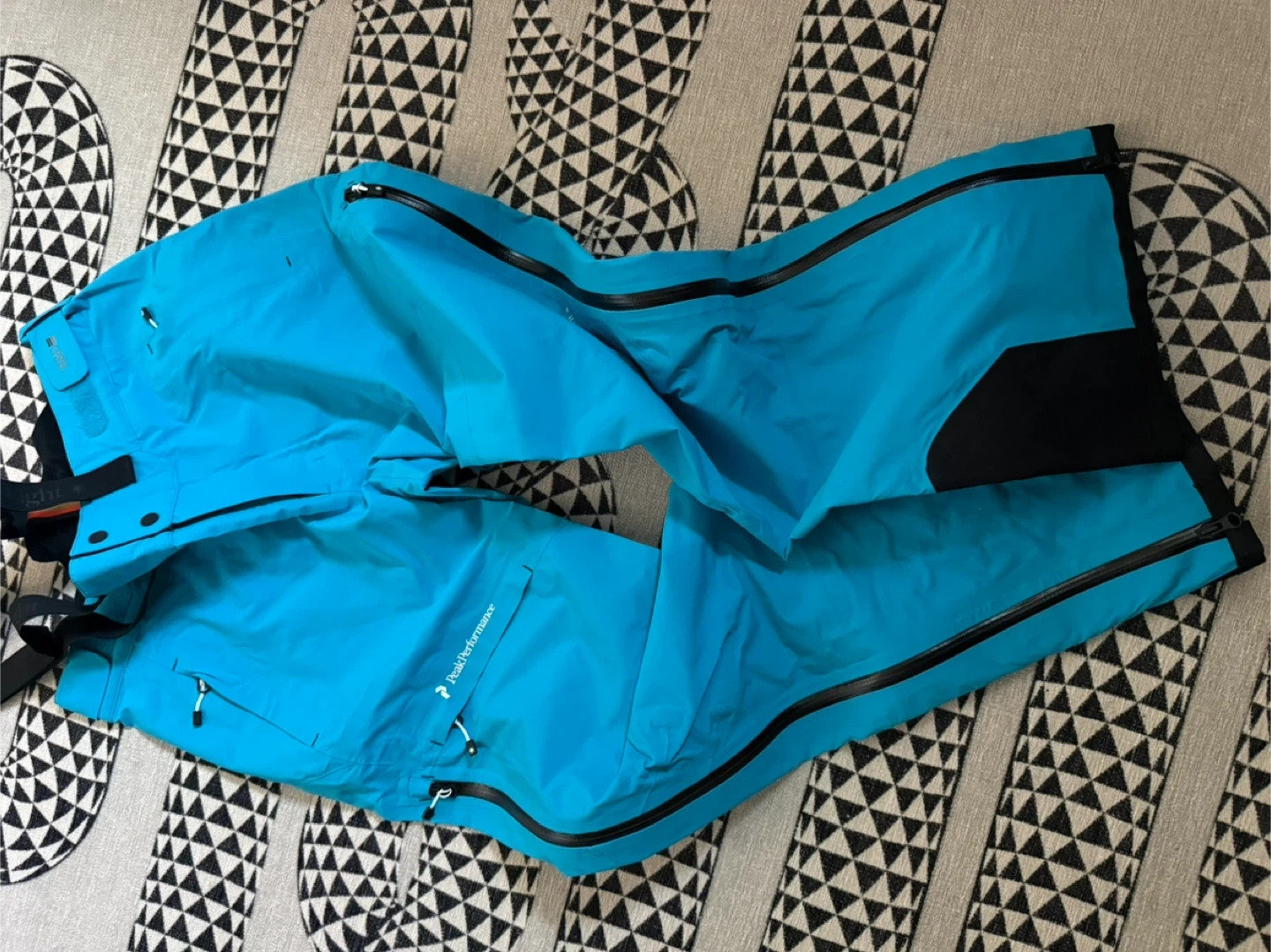 NEW: These Peak Performance ski pants are a vibrant bright blue colour. They're made with waterproof and breathable material, perfect for hitting the slopes. Features include adjustable suspenders, zippered pockets, and vents. Ready for your next winter adventure!