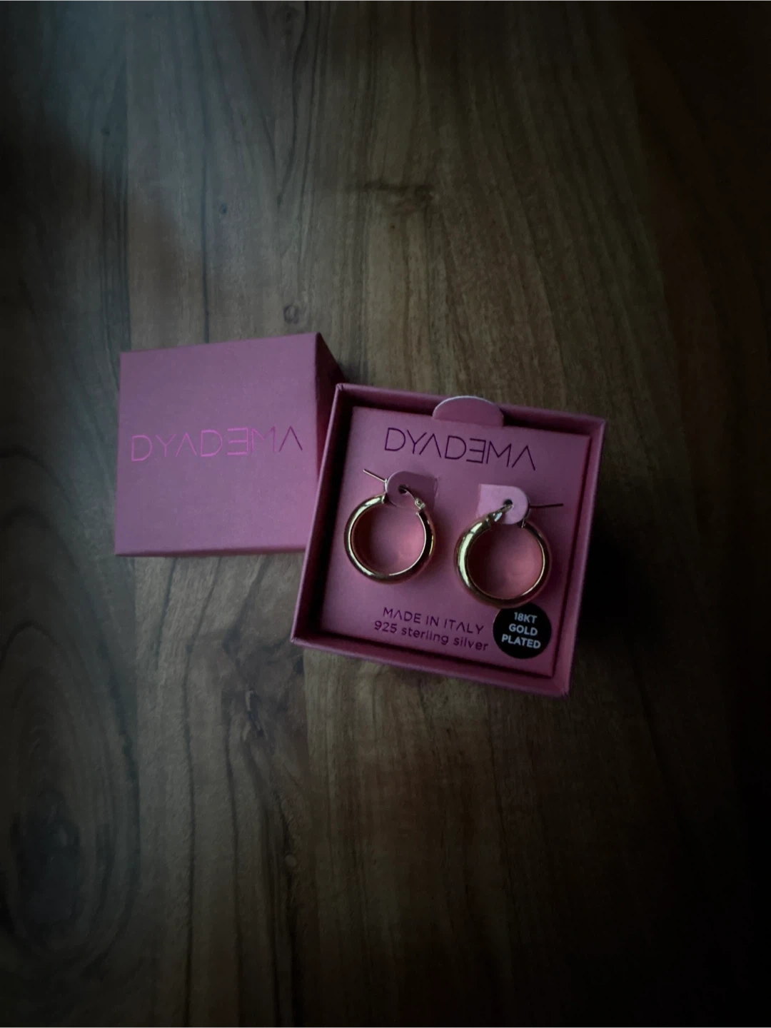 65Selling a pair of brand new DYADEMA hoop earrings! They're made in Italy with 925 sterling silver and are 18KT gold plated. They come in the original box, perfect for gifting or treating yourself!