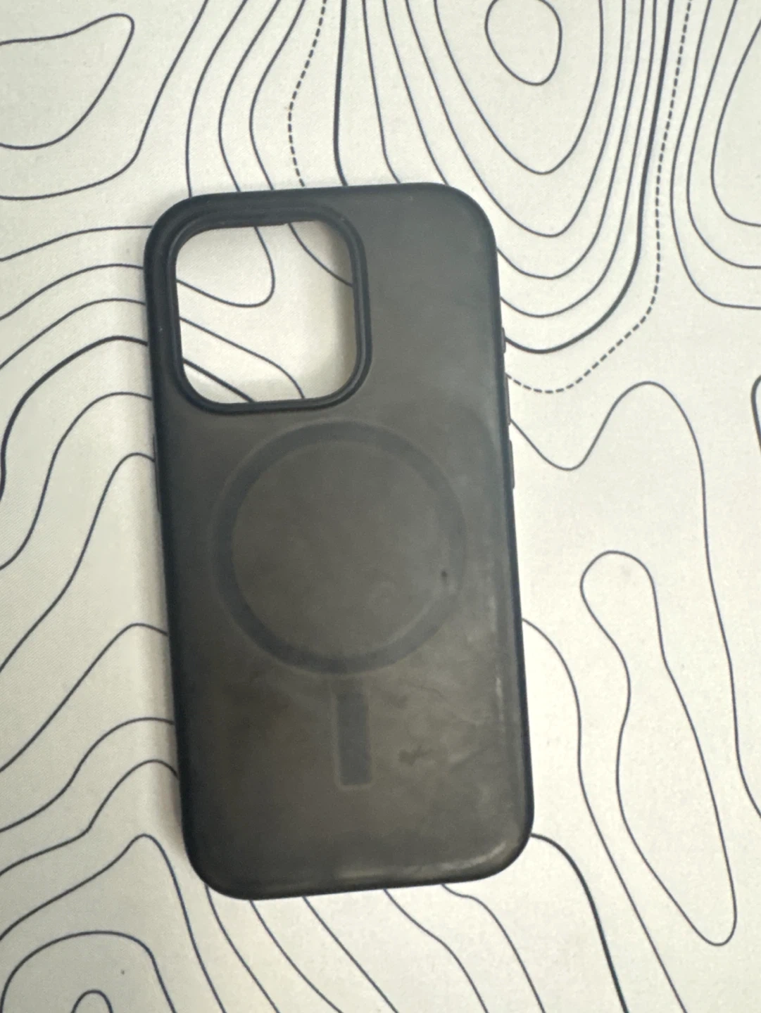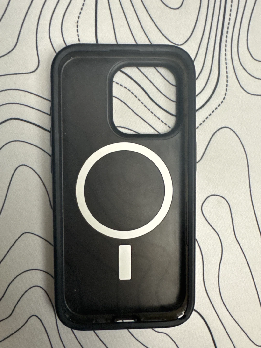 Black MagSafe compatible case for iPhone 15 Pro. It's made of durable material and offers good protection. This case is great for daily use and magnetic charging!