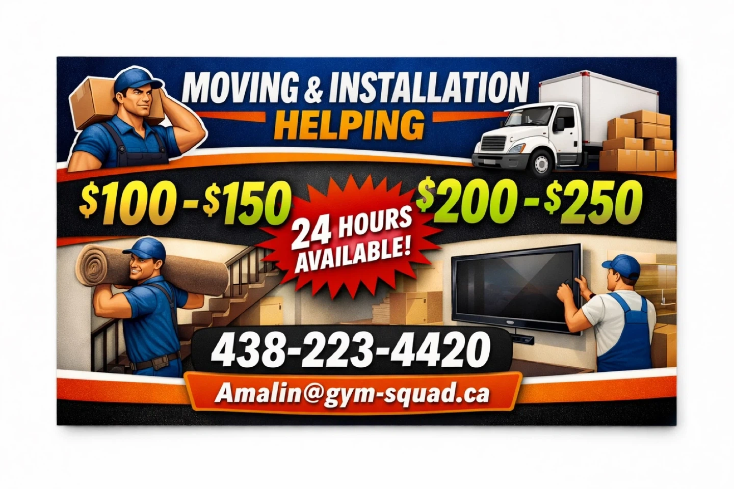 This GMC box truck is ready for your moving or delivery needs. It's equipped with a spacious cargo area, perfect for transporting furniture or goods. Assistance with moving and installation services is also available. Call 438-223-4420 for more info. 24x7 text Me make the schedule