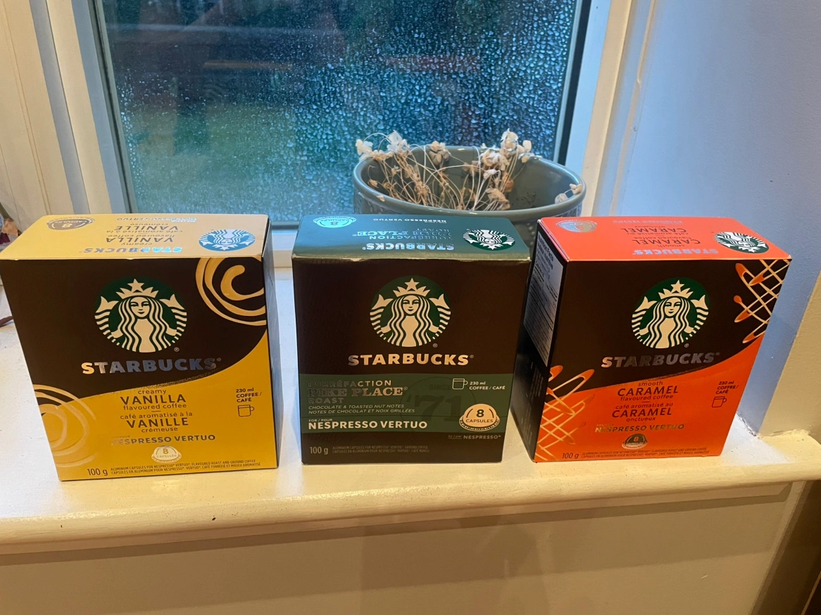 Selling 3 boxes of Starbucks Nespresso Vertuo capsules: Creamy Vanilla, Pike Place Roast, and Caramel
