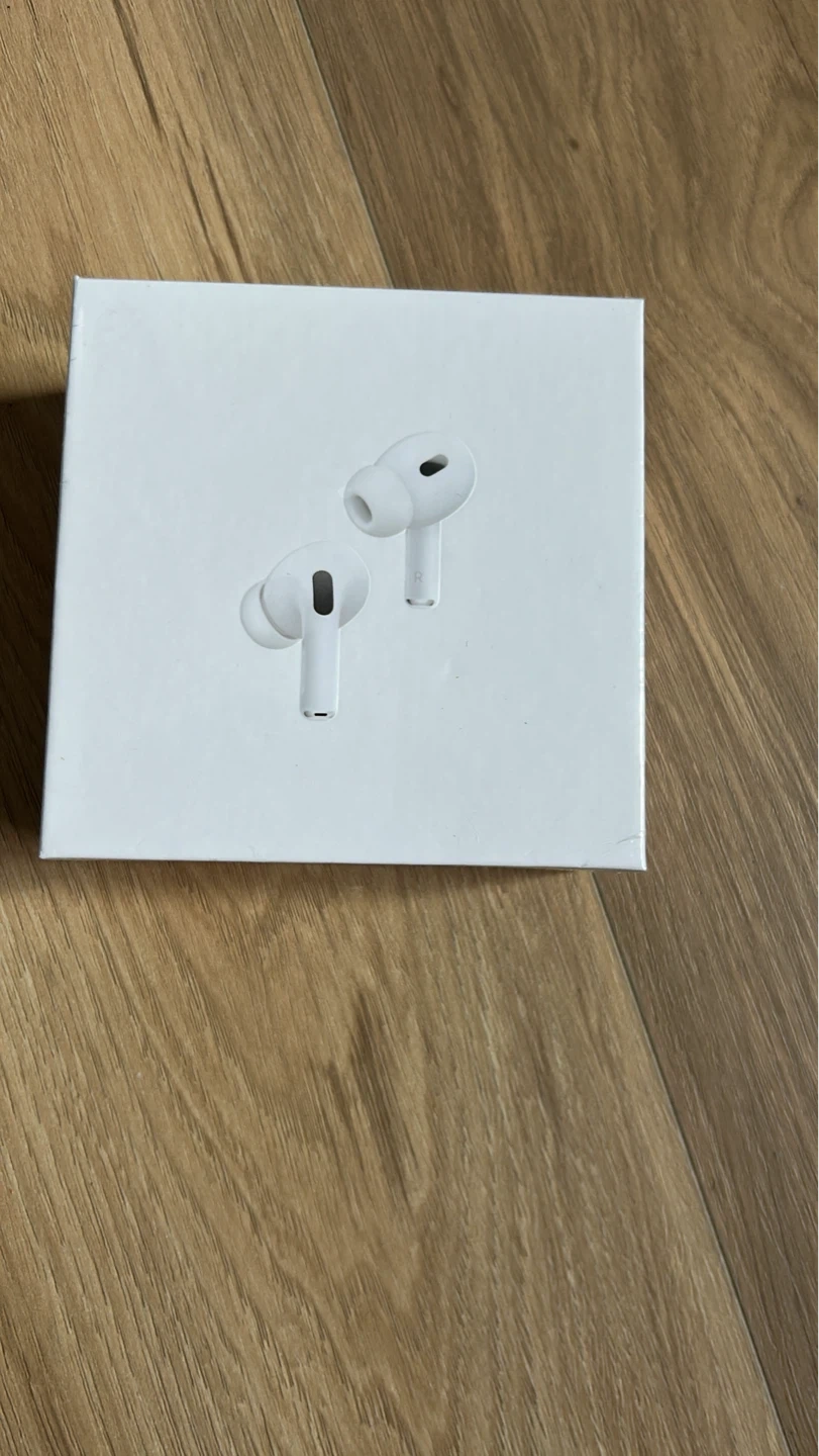 Apple AirPods Pro (2nd generation) with MagSafe Charging Case. Includes USB-C charging cable. Purchased August 12th, 2025.