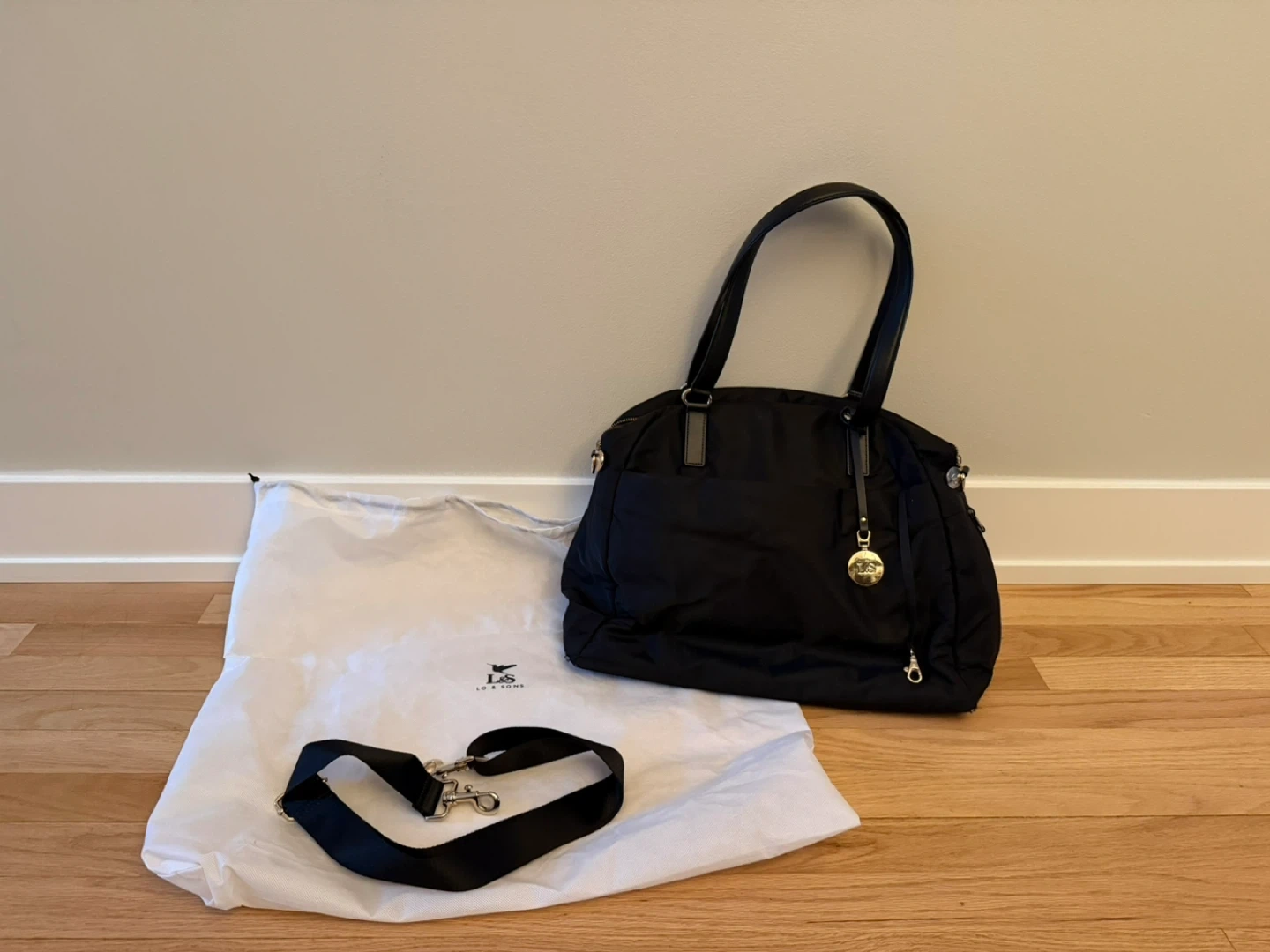 Black Lo & Sons Nylon Tote Bag with Shoulder Strap & Dust Bag