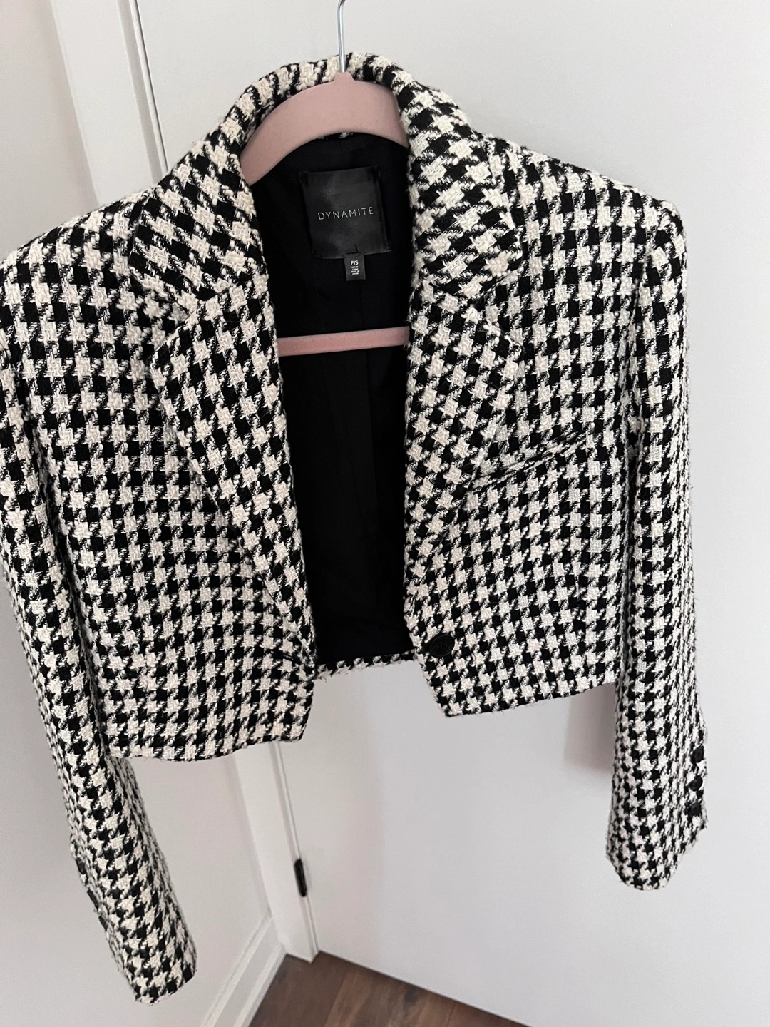 Selling a Dynamite houndstooth cropped blazer in size small! It's in great condition and ready for a new home. Perfect for adding a stylish touch to any outfit!✨ Lightly worn!