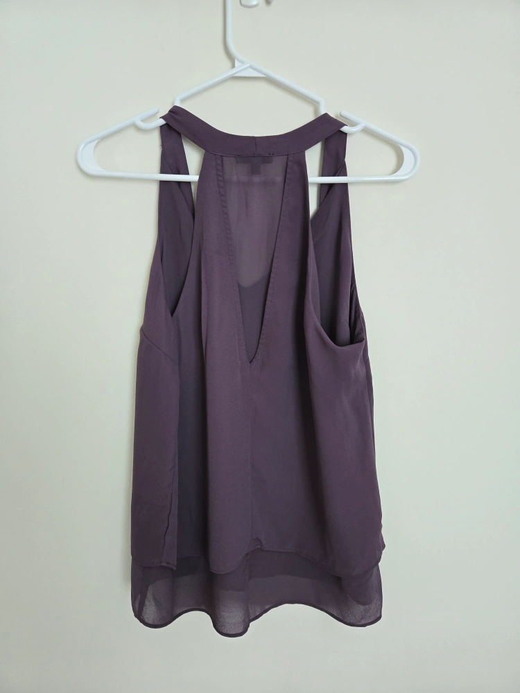 Dynamite Purple Sheer tank top with neck tie. Can be worn tied at neck or down. Perfect for office wear layering or for night out. Great condition only worn once.