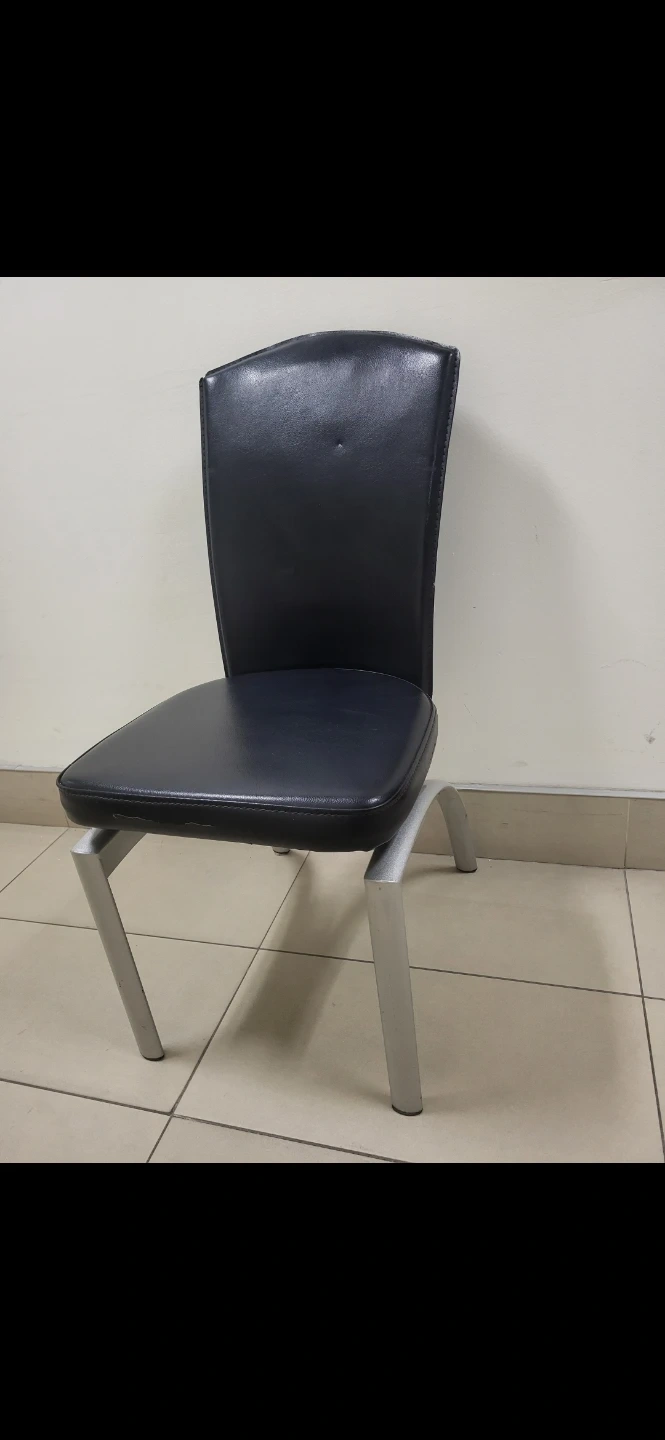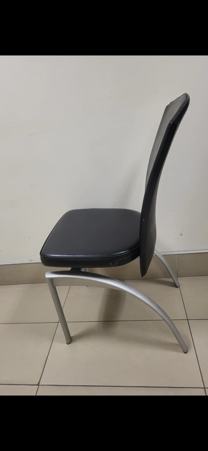 Design: Modern curved silver-finish metal legs with a durable black faux-leather (PVC/PU) Faux Leather, upholstered seat and back.