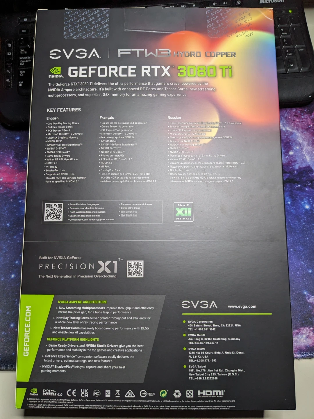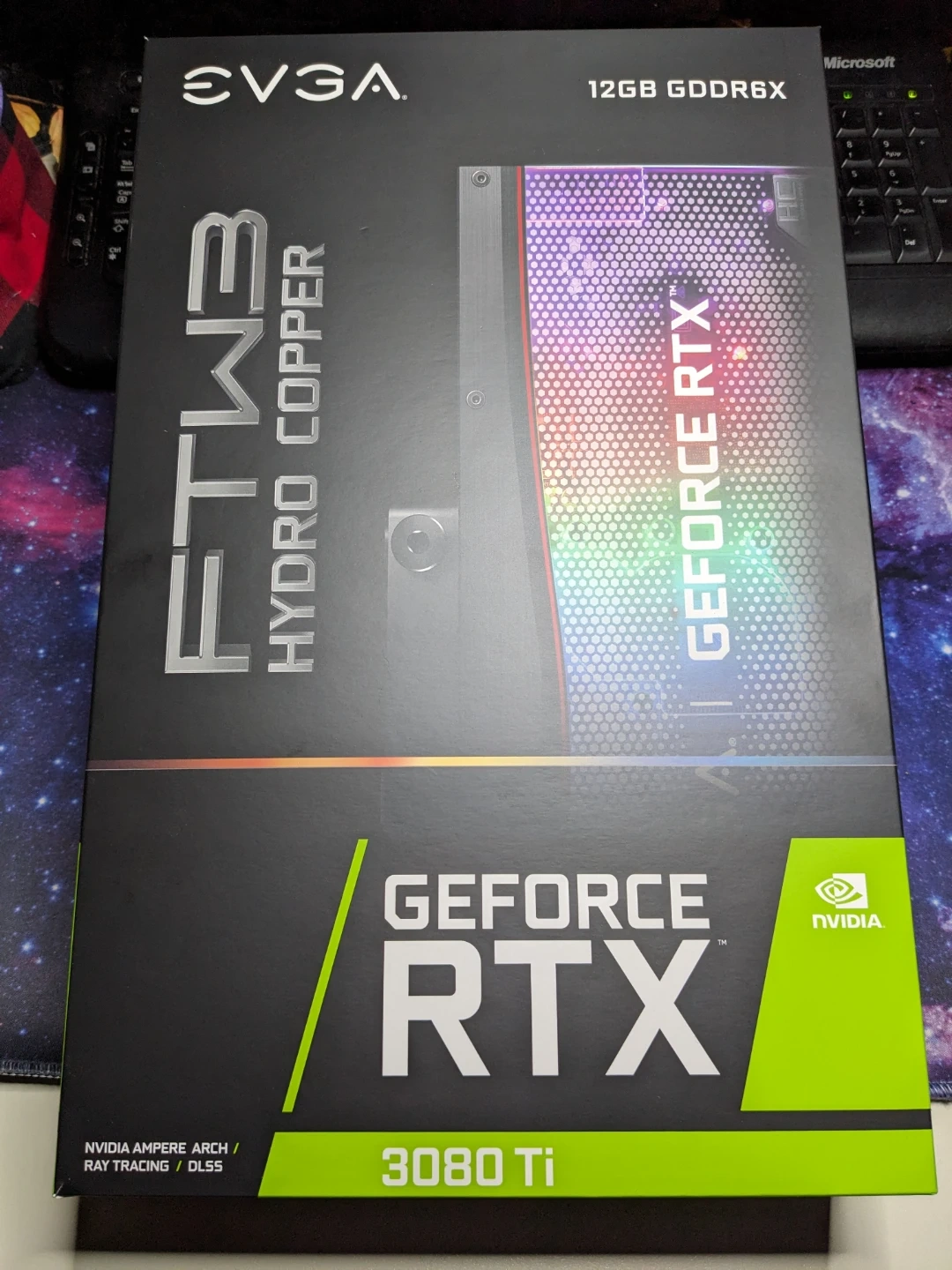 This EVGA Hydro Copper graphics card is an RTX 3080 Ti. It features 12GB of GDDR6X memory. It's designed for gamers seeking an amazing gaming experience. Includes original box and packaging. Open to offers.