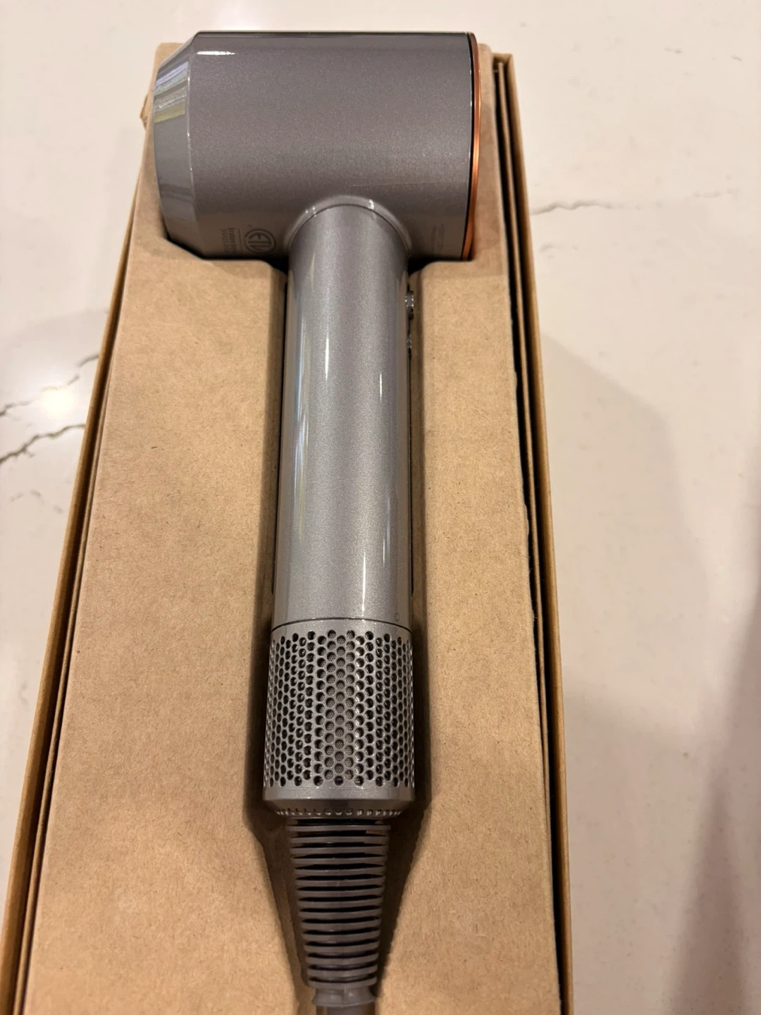 38Selling a Dyson Airwrap multi-styler in silver and copper. It's in great condition and comes with the original box! This styler is perfect for creating a variety of hairstyles with ease.