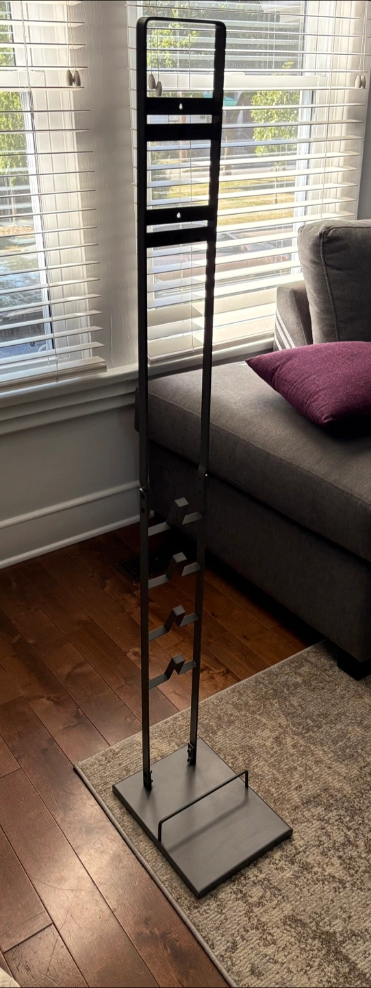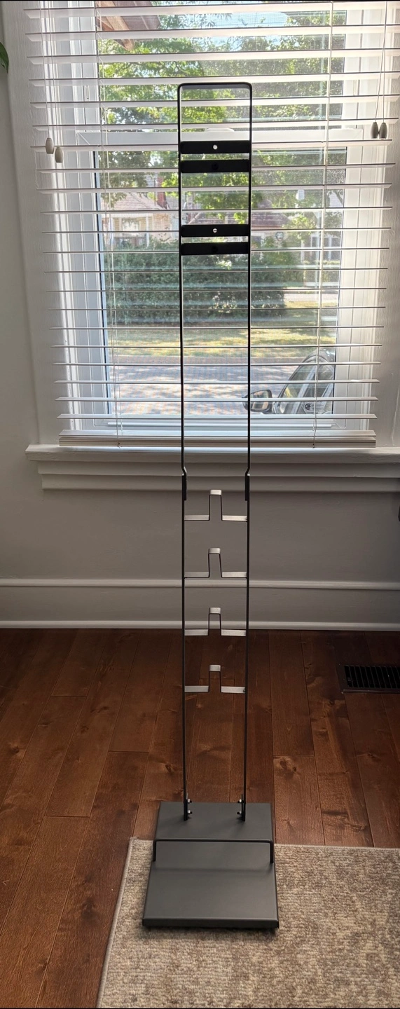 Gently used metal storage stand for Dyson cordless handheld vacuum cleaners. Sturdy, space-saving design with multiple hooks to hold attachments and accessories neatly in one place. Helps keep your vacuum charged and your space organized without drilling holes in the wall. In excellent condition, only selling because we have switched to a different storage setup. Dimensions: Approx. 51” high with a stable metal base, 11.5” https://www.amazon.ca/gp/aw/d/B07R1SZ6LR?psc=1&ref=ppx_pop_mob_b_asin_title