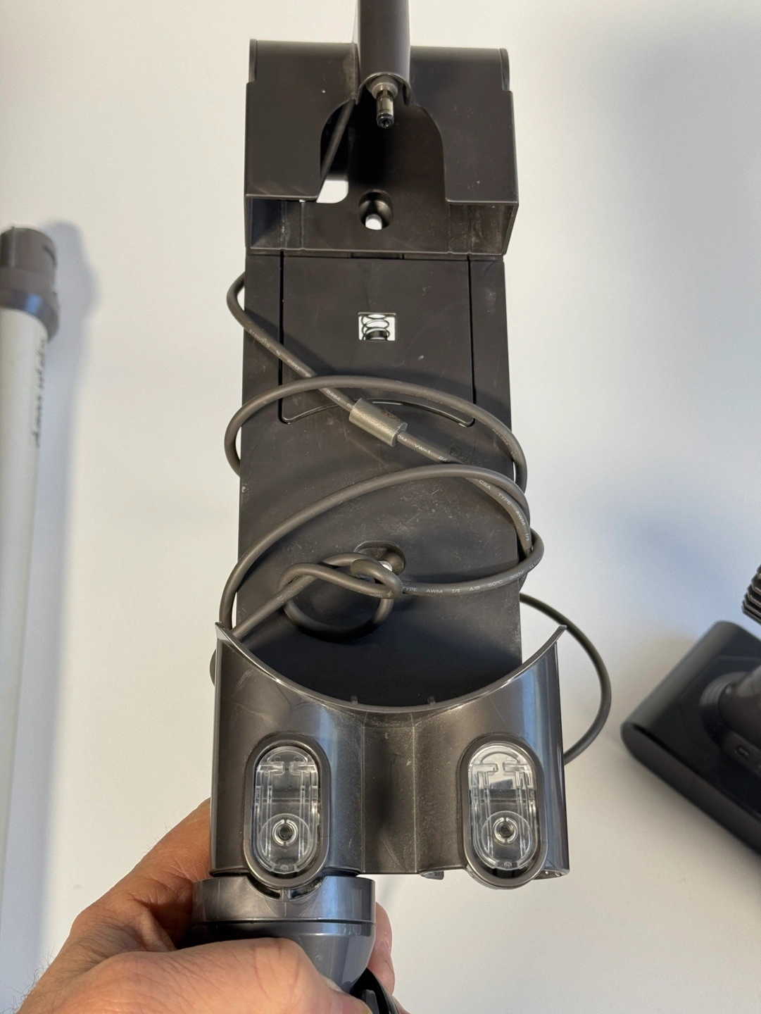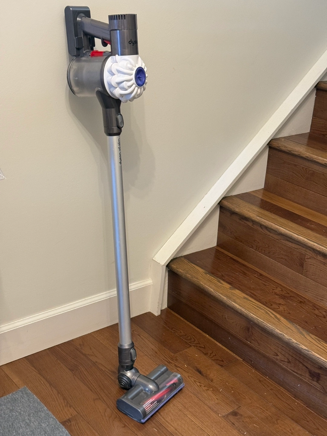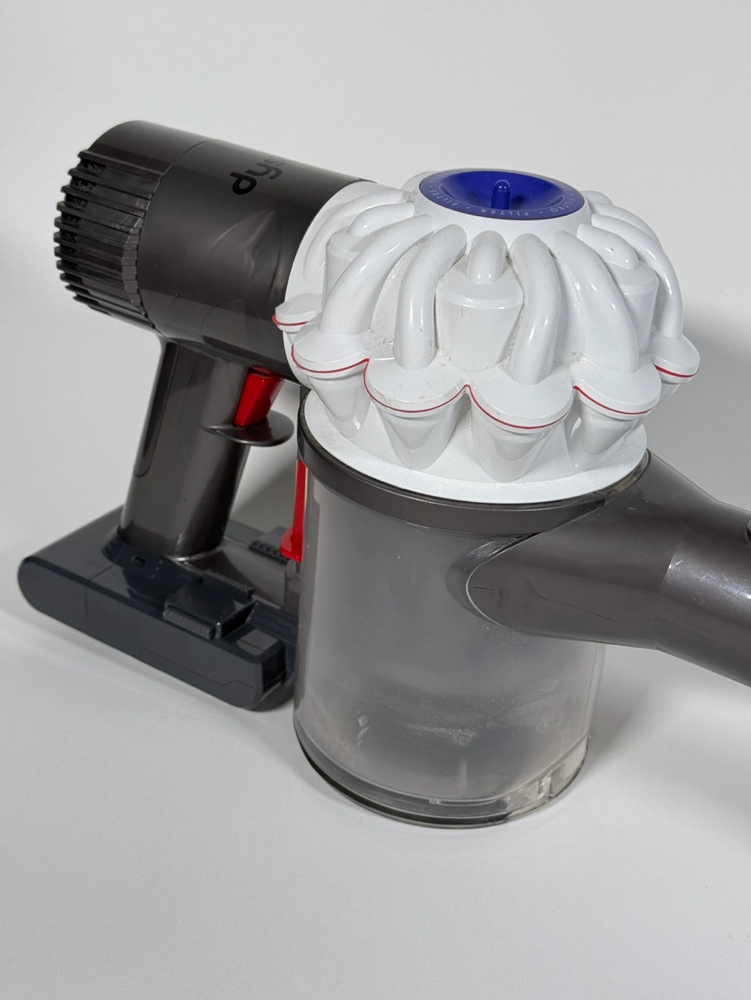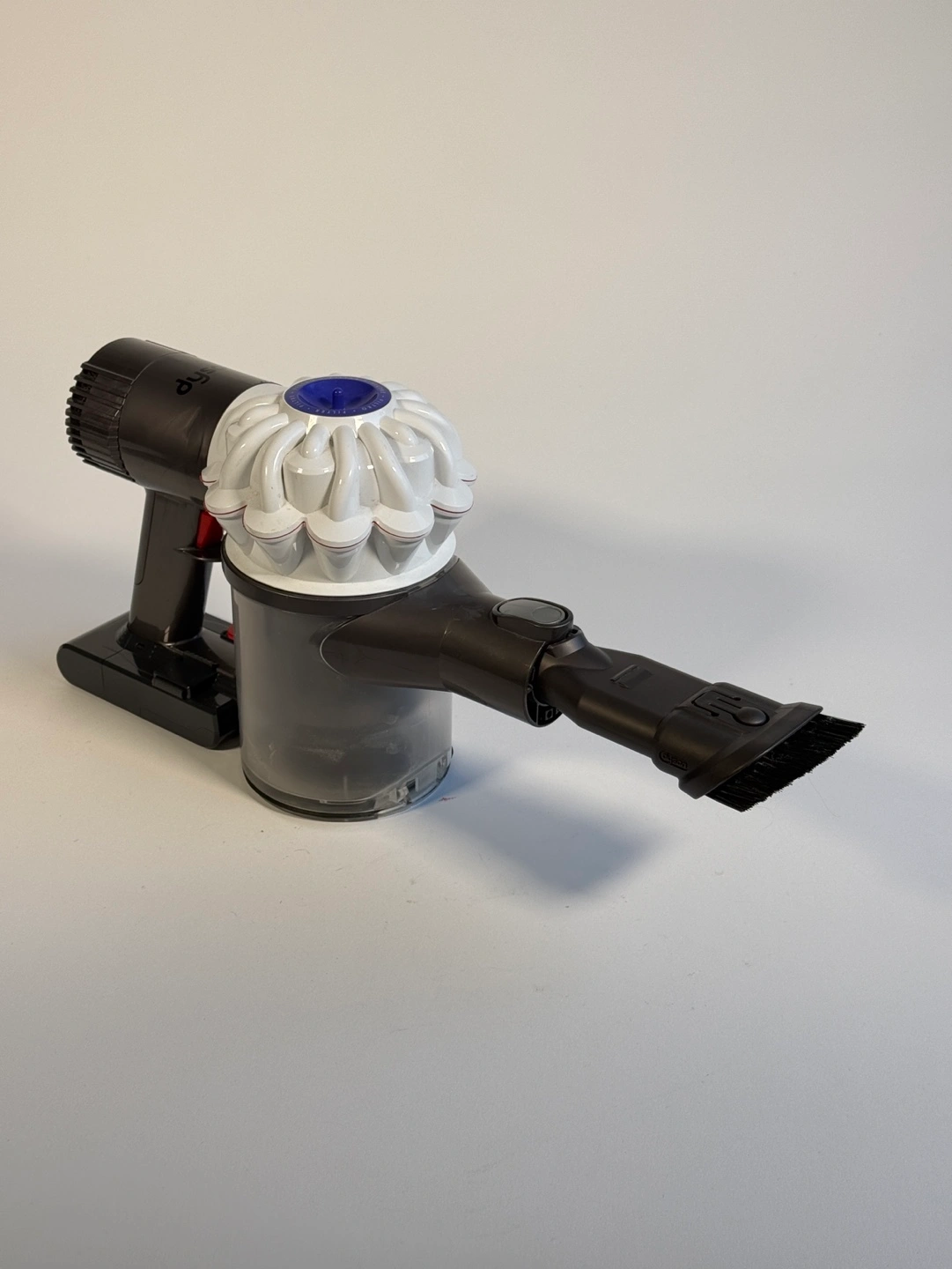 Used Dyson V6 slim handheld vacuum. Includes charging dock and various attachments. Cordless vacuum cleaner. Brand new battery. Comes with charger several attachments and a hanging mechanism for wall.