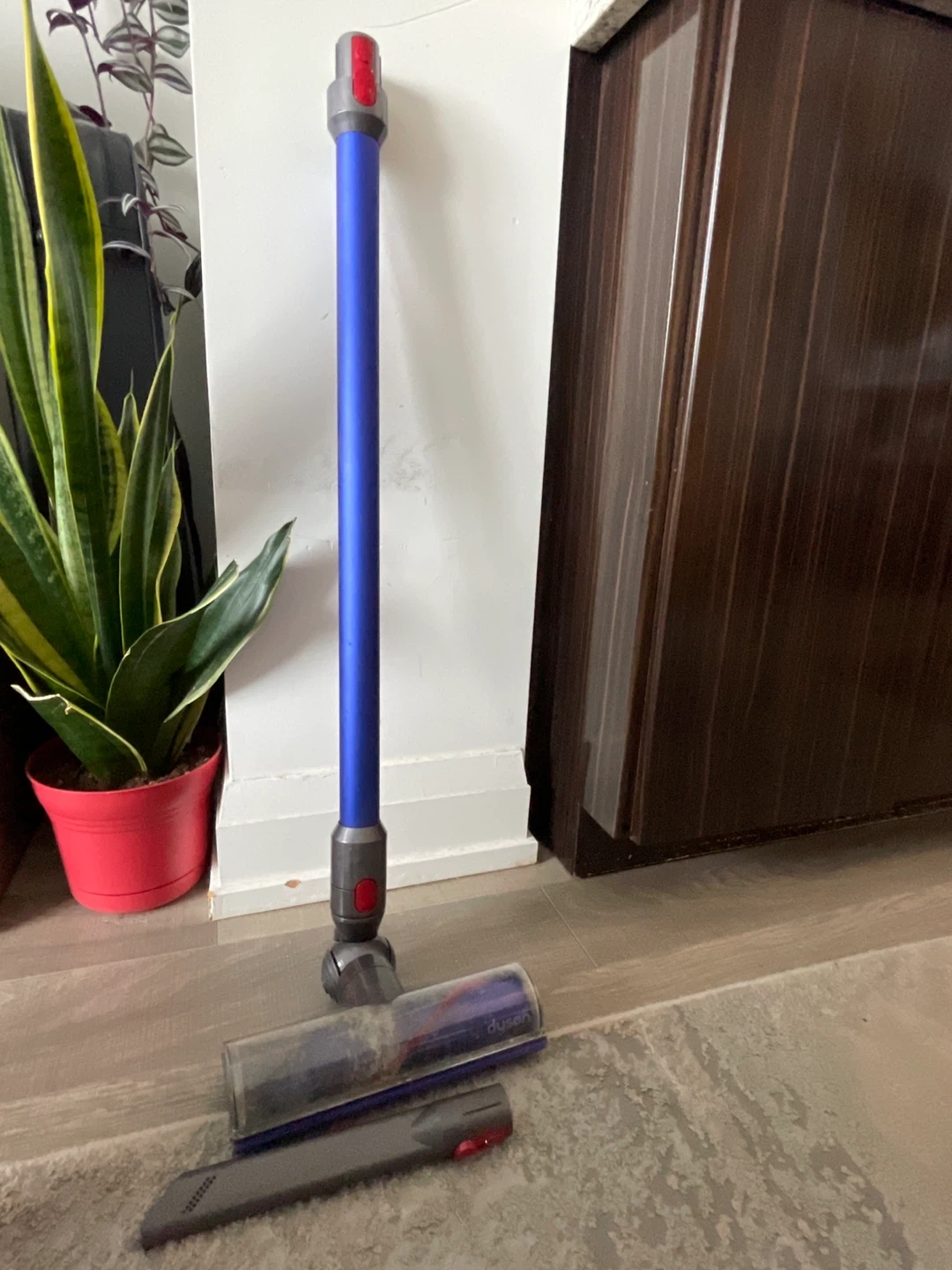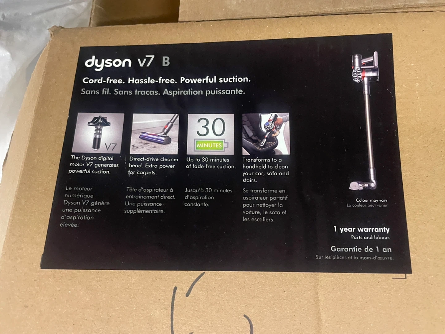 85Selling a used Dyson V7 cordless vacuum. It's in good working condition and ready to tackle any mess! It is lightweight and portable, making cleaning a breeze.
