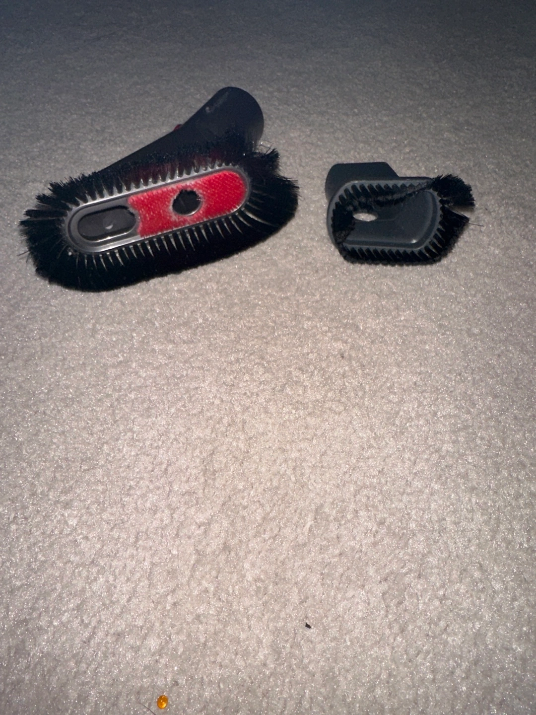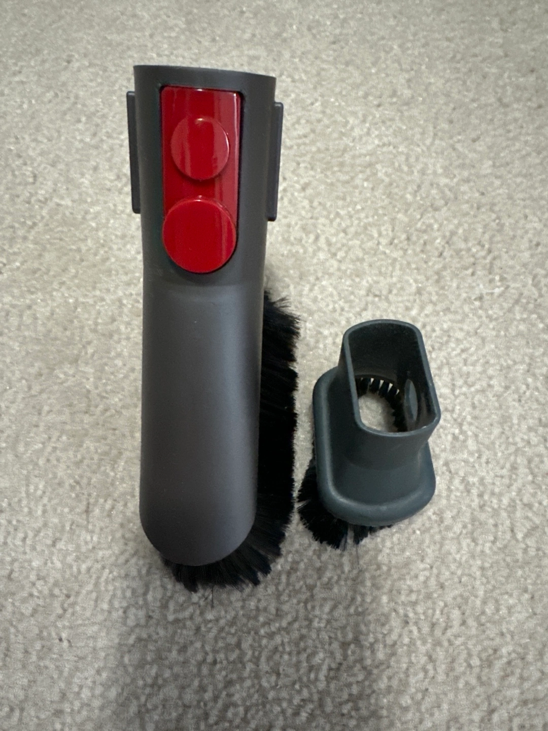 Never used Dyson vacuum cleaner attachments. One is a soft dusting brush and the other is a crevice tool.