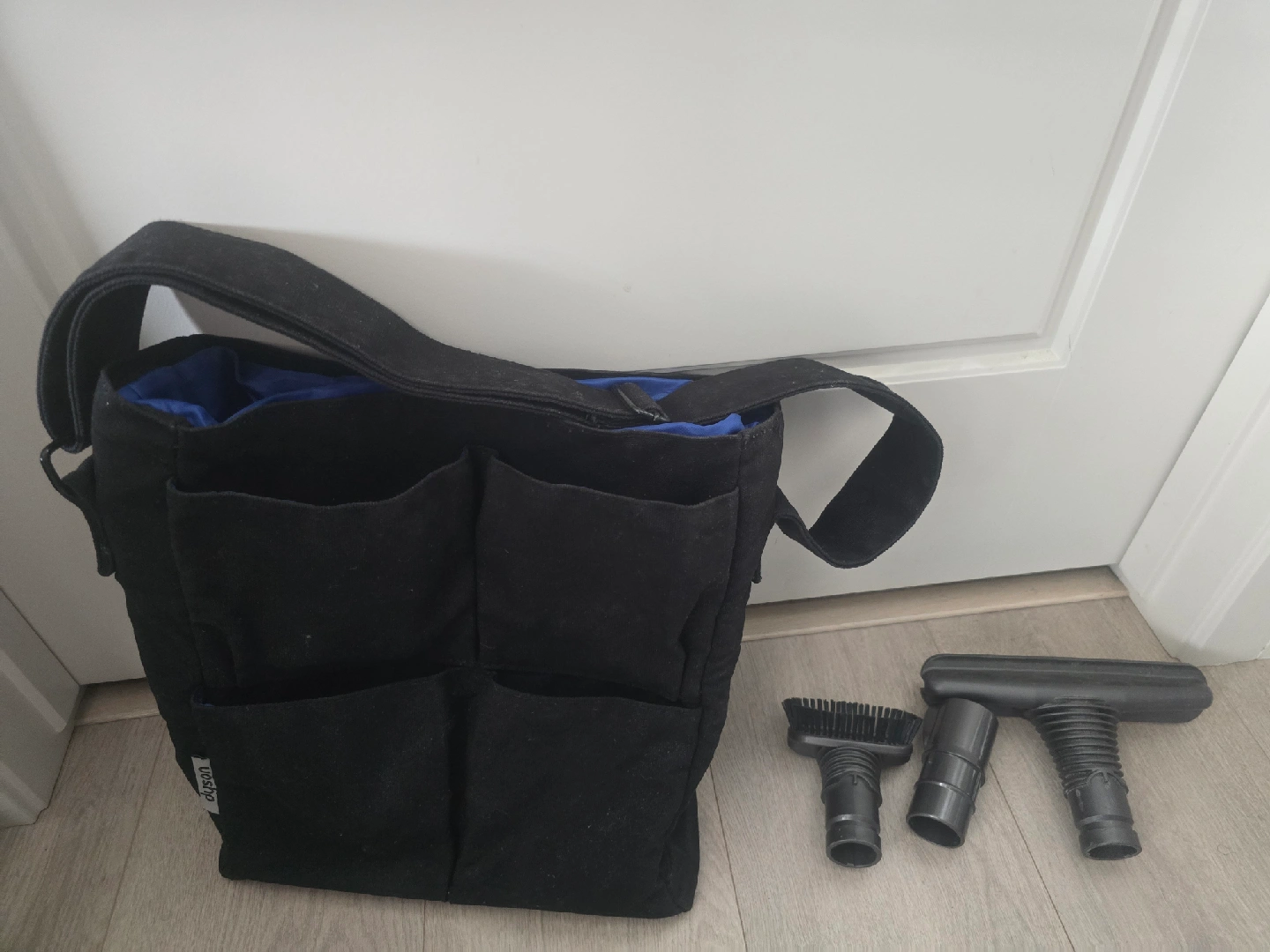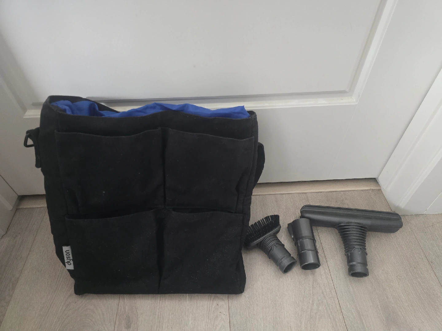 No Issues Attachments Included for Grey Button Release V6 DC30, DC31, DC34, DC35, DC44,DC series 32mm (1.26 inch) Pickup Seton SE Selling a Dyson vacuum cleaner bag in black, complete with attachments! It's in great shape and ready to help keep your cleaning supplies organized. Perfect for keeping all your Dyson accessories together