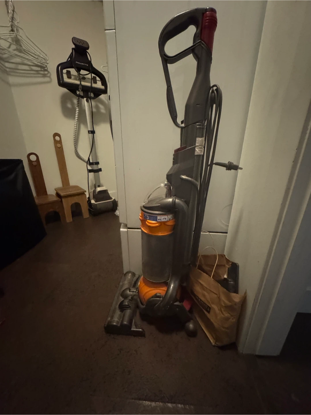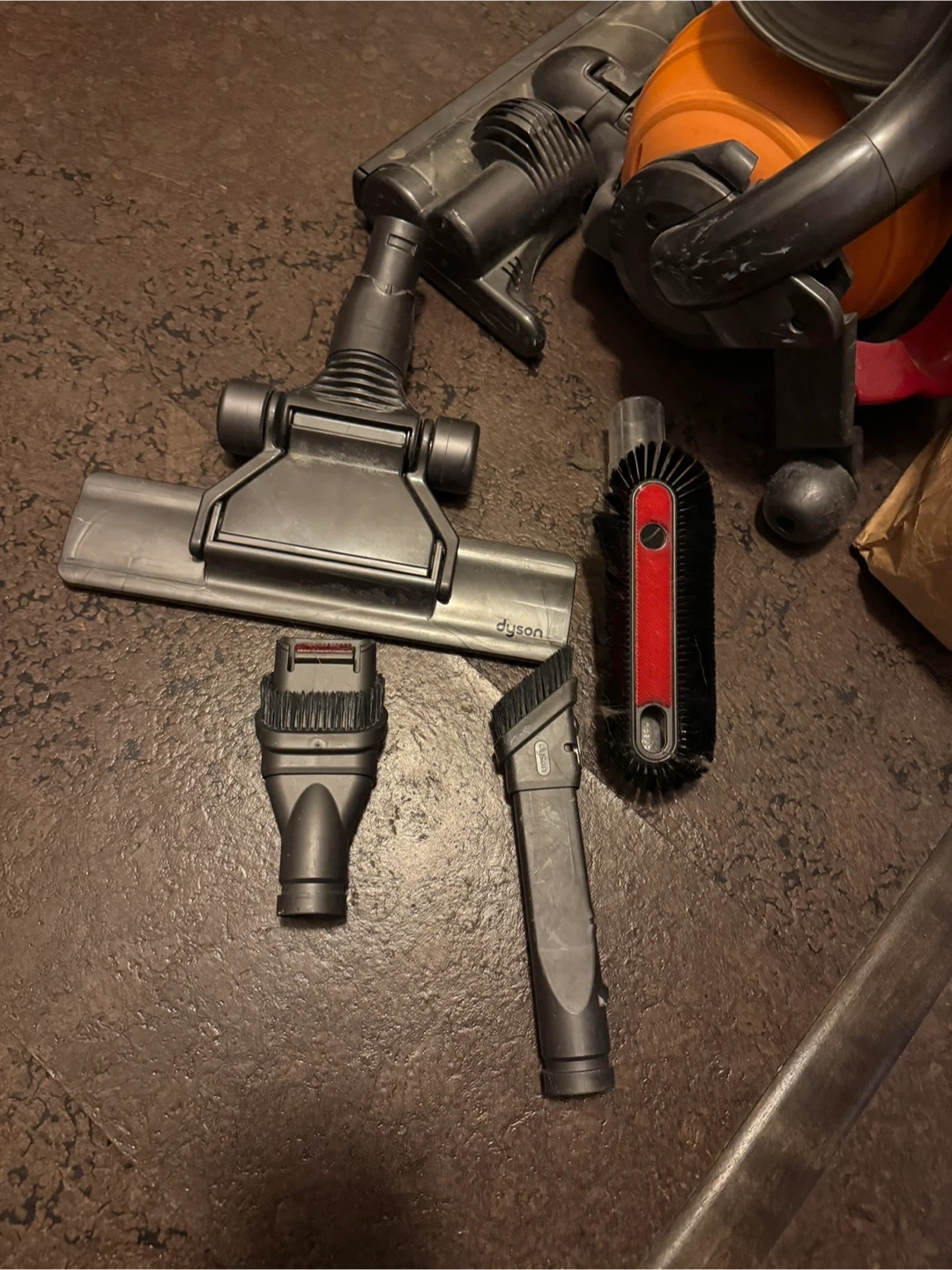 Selling a used Dyson vacuum cleaner with various attachments. It's in good working condition and ready to help keep your home clean!