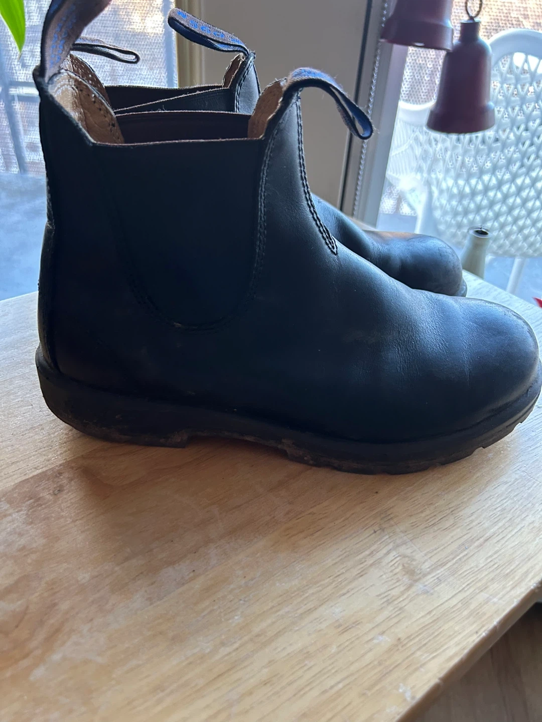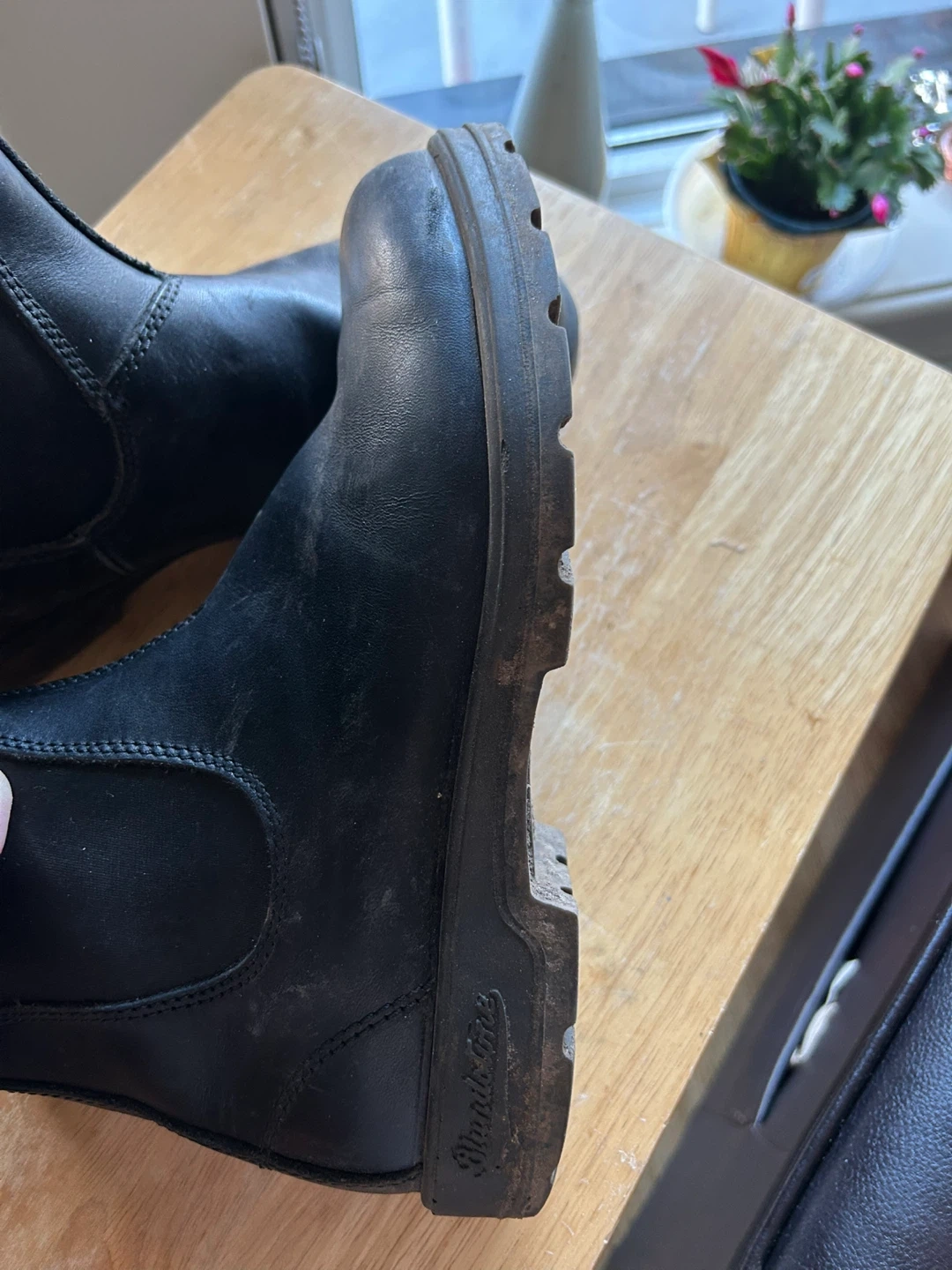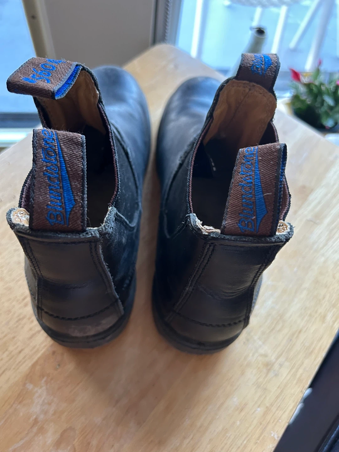 These are Blundstone 560 elastic-sided boots. They're made with black leather. They're a popular choice for work and casual wear. They're comfortable and durable!