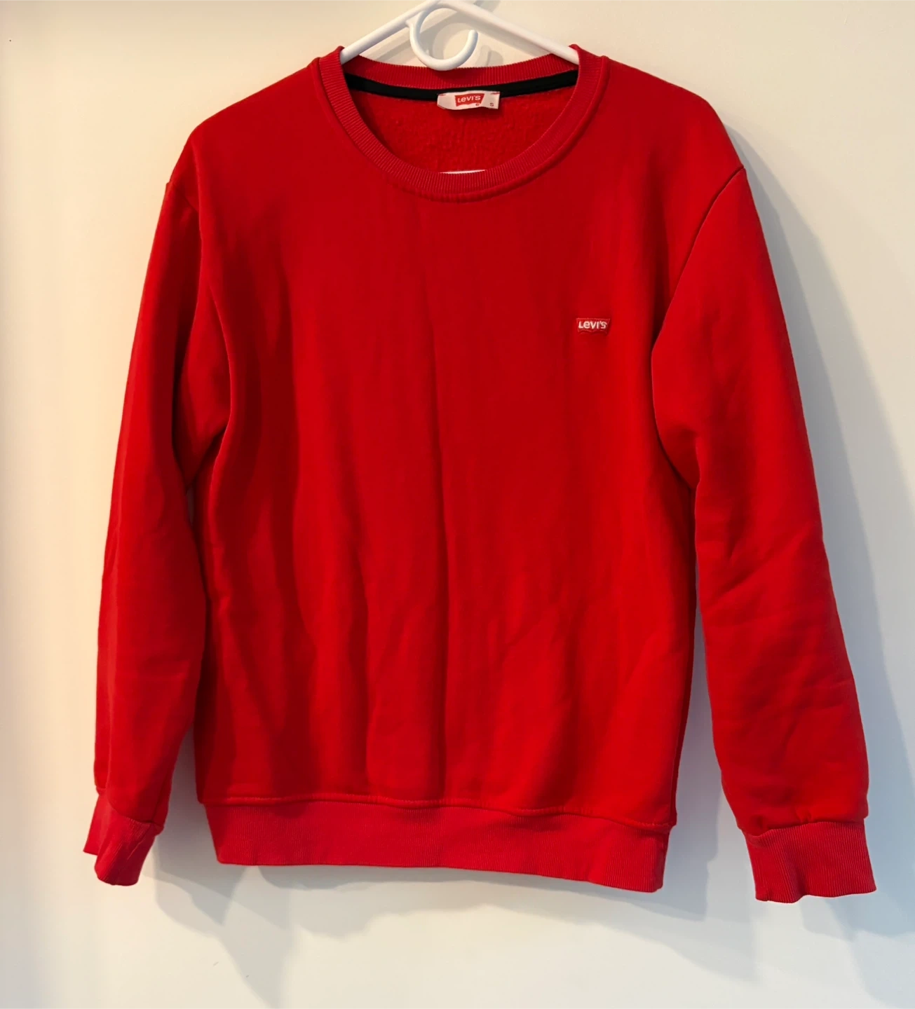 Red crewneck sweatshirt from Levi's. It's made from a soft fleece material, perfect for keeping warm. The classic logo tag is visible on the chest.