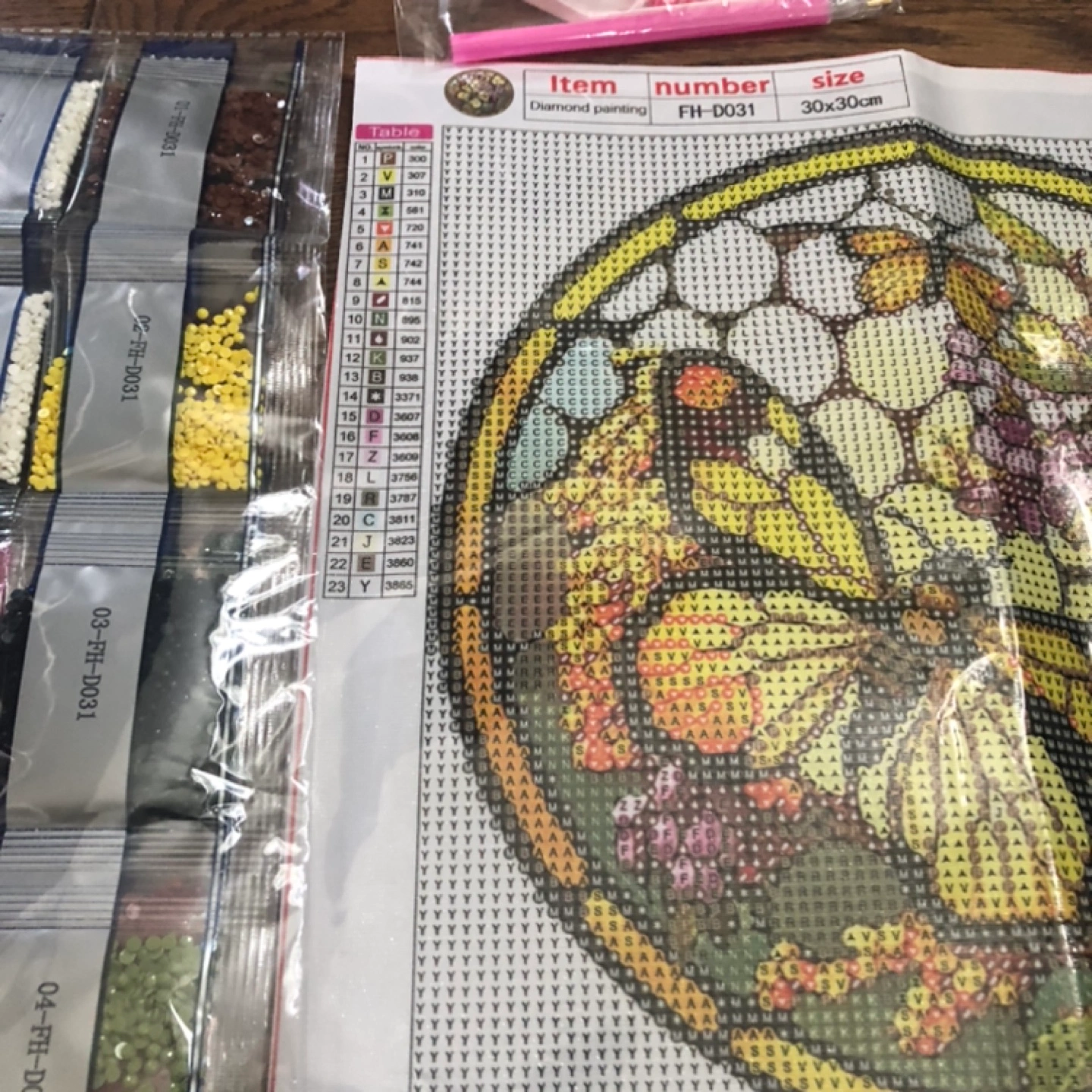 5D diamond painting kit. Includes resin diamonds, tools, and canvas. Floral design, 30x30cm. FH-D031.