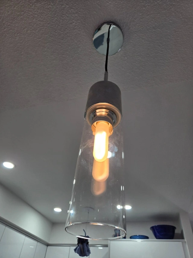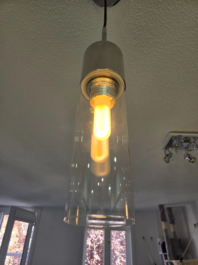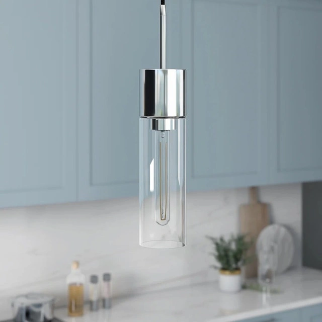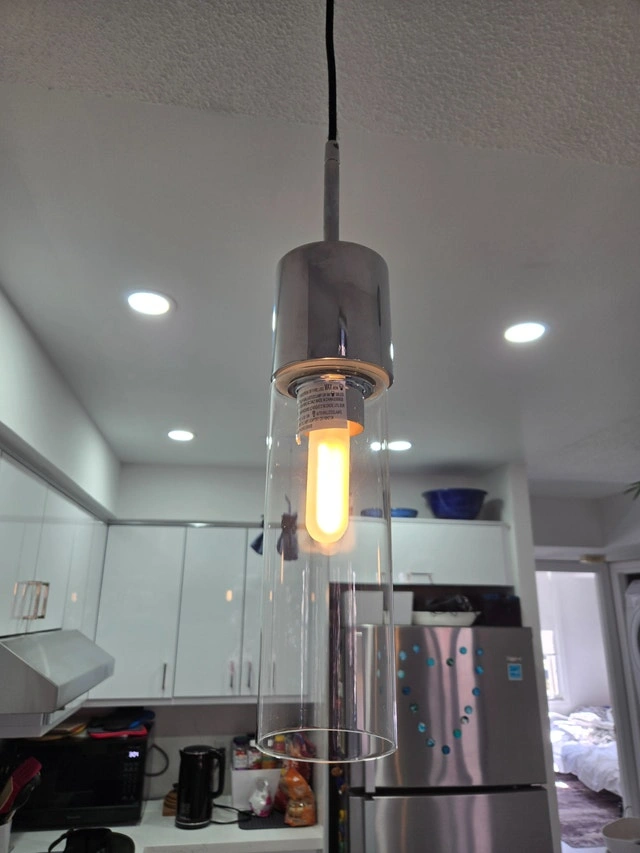 Add some class to your home with a pair of dimmable AllModern Hubbard 1 cylindrical chrome & glass pendant lights. Includes 2 extra E26 bulbs. Adjustable height, glass cylinders are 9.5 inches tall (13 inches including base), 3.5" diameter. Currently retail on Wayfair.ca for $134 each.