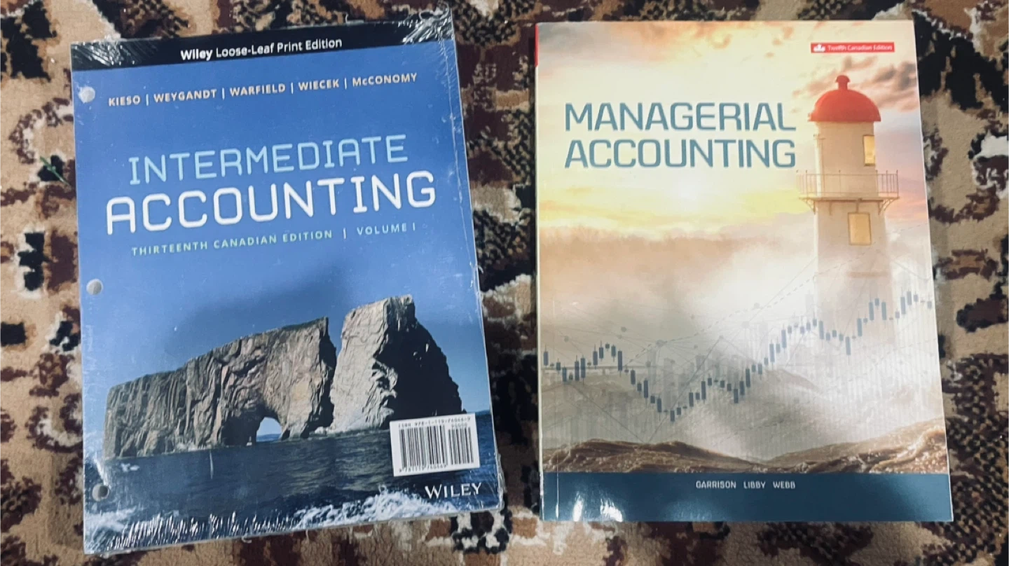 Two accounting textbooks: Intermediate Accounting, Thirteenth Canadian Edition, Volume I, and Managerial Accounting, Twelfth Canadian Edition. Both are loose-leaf print editions.
