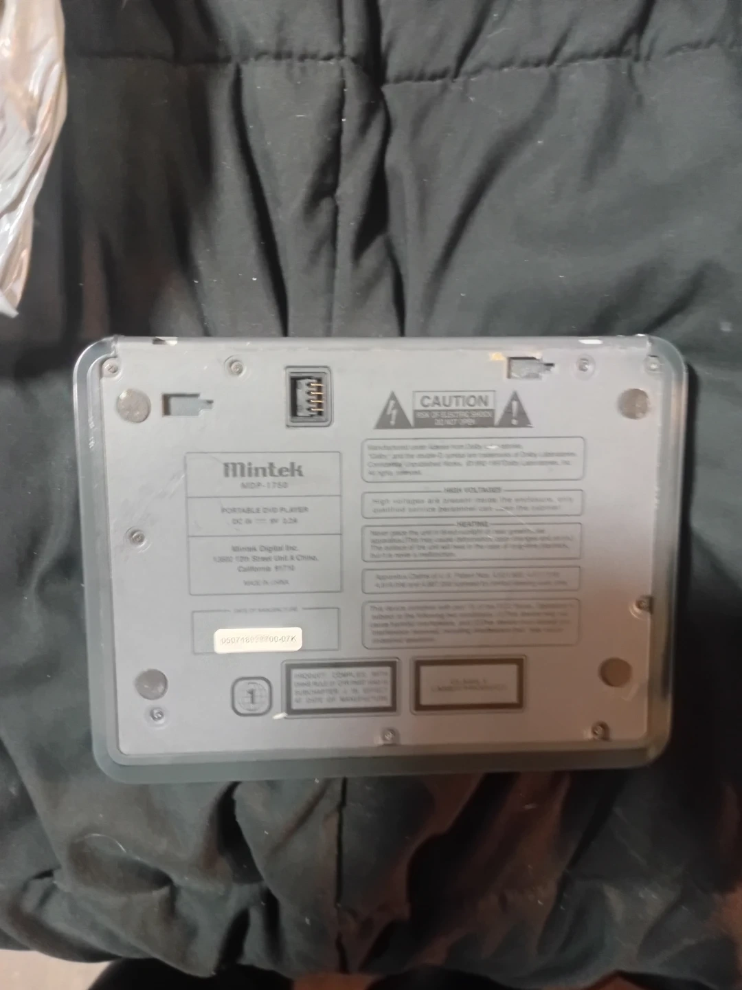 I CANT FIND THE CORD RIGHT NOW .This Mintek portable DVD player features a 7-inch TFT monitor. It's a silver model, MDP-1750. Multiple ports are available, including headphone and DC in.