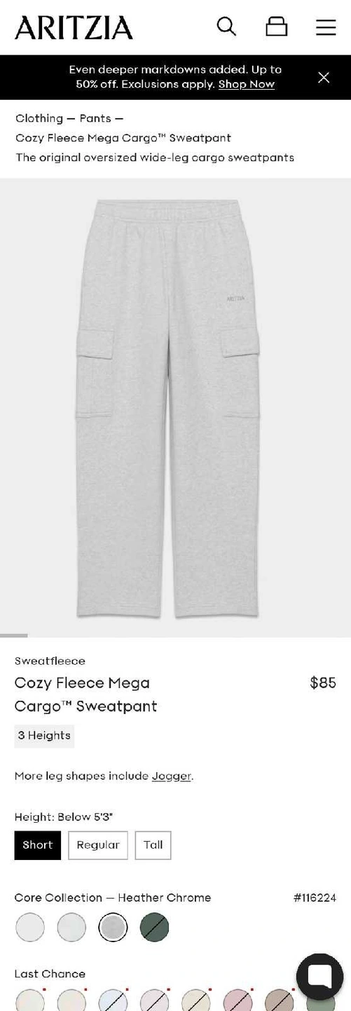 Aritzia Sweatfleece Cargo Sweatpant