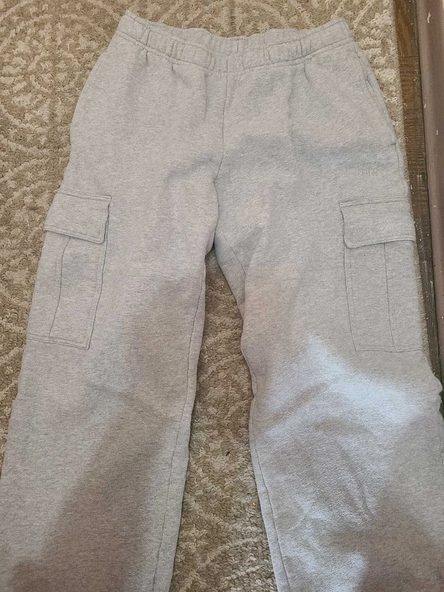 Cozy fleece mega cargo sweatpants. Colour: heather chrome. Size: Likely XS/S (waist measures 26in). Unworn but tag is cut.